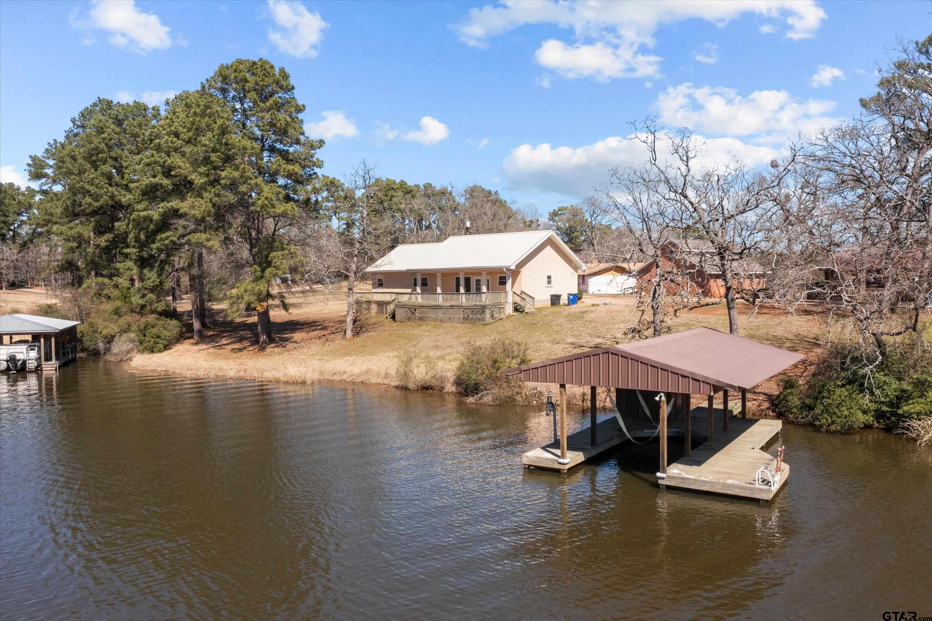 | BEAUTIFUL WATERFRONT HOME IN LAKE FOREST ESTATES! Come see this remarkable waterfront home on Houston County Lake! This well-maintained three bedroom, two bath home is situated on 4 lots, totaling 0.863-acre. If you’re in search of a residence for full-time lake living, or a weekend retreat, this is the home for you. Once you enter the home from the welcoming front porch, you will be impressed with the open concept and easily maintained ceramic tile flooring throughout the living, dining, and kitchen. The living area overlooks the back patio and offers great views of the lake. The kitchen features an abundance of cabinet space, granite countertops, tile backsplash, stainless steel appliances, and a handy pantry. The handy laundry area just off the kitchen comes with the washer and dryer. The primary bedroom has a walk-in closet and private bath, with soaking tub and walk-in shower. Two guest bedrooms share a hall bath with a shower/tub combo. Outdoors, you’ll love having a barbecue on the partially covered deck overlooking the lake. The nice boathouse has an electric boat and jet ski lift, and large storage room for all your fishing and tubing gear. This property must be seen to be truly appreciated. Call today to schedule a private tour and make this dream home your reality! | |