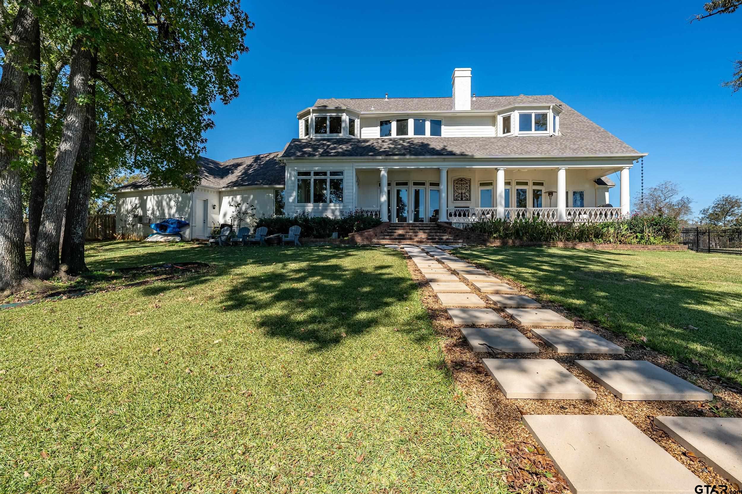 | Welcome to lakefront living in Pecan Valley Ranch. This stunning 4-bedroom home sits along the shores of Lake Lou Ella and offers beautiful water views from the main living areas and the primary suite. From the moment you arrive, the Southern-style front porch with gas lanterns and porch swings sets the tone for gracious, relaxed living in this gated neighborhood within Bullard ISD — just 8 minutes from Tyler’s Cumberland Village w/shopping, restaurants, and medical. Inside, soaring ceilings, wood floors, abundant windows, and warm stone accents create an inviting atmosphere. The living room features a floor-to-ceiling stone fireplace flanked by custom built-ins and is open to a chef’s kitchen with custom cabinetry, granite countertops, pantry, island, gas cooktop, double ovens, pot filler, and a bar area—ideal for everyday living and entertaining. A formal dining room with stacked ceiling and a breakfast area surrounded by windows overlook the lake. A butler’s pantry and dedicated office complete the central level. The expansive primary suite offers a fireplace, sitting area, and serene lake views. The ensuite bath includes separate vanities, a jetted tub, walk-in shower, and an oversized walk-in closet with direct access to the laundry room for ease and convenience. A guest suite with private bath is also located downstairs. Upstairs, two generous bedrooms share a Jack and Jill bath, along with a media area, game room with half bath, and an additional bonus/flex space that can adapt to your needs. Outdoor living shines here with a spacious covered back porch featuring a fireplace—perfect for gatherings year-round—while taking in the peaceful water views. A 3-car garage and exceptional storage throughout complete this beautiful property. Where elegance meets comfort, and lakefront sunsets meet everyday living—this is a home to be lived in and loved. Come See! Come Buy! | |