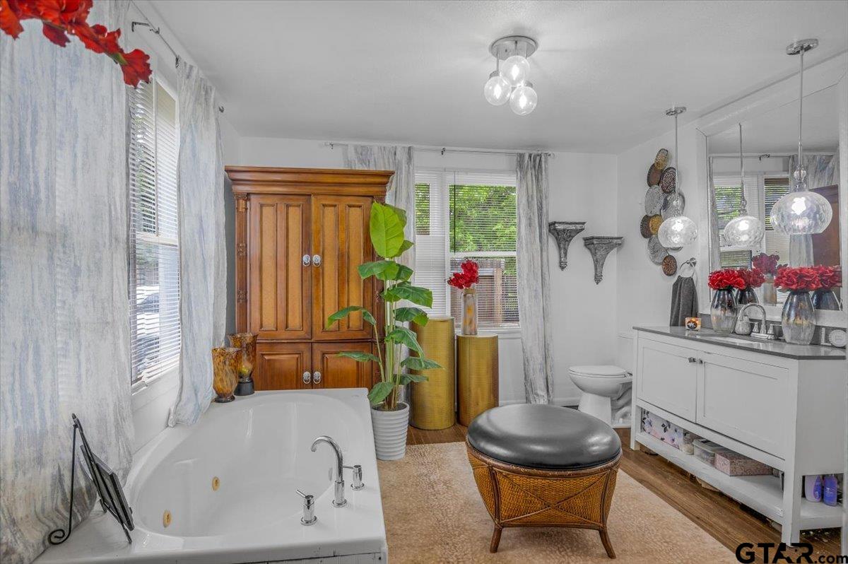 | This cottage cutie will make you swoon. The porch greets you at first approach. The living room offers a mock period fireplace and original hardwood floors. The seller has opened what was originally a third bedroom to create an open dining room perfect for entertaining family and friends and offering more space when needed. The kitchen is well decorated and offers gas cooking and a stylish vent hood. The primary bedroom offers a walk in closet and a cozy nook for reading. The sumptuous updated primary bath features a large jetted tub. The guest bath offers a tile enclosed tub/shower. Fenced back yard has side parking with wrought iron gate for privacy and a metal pergola for entertaining or relaxing at the end of the day. | |