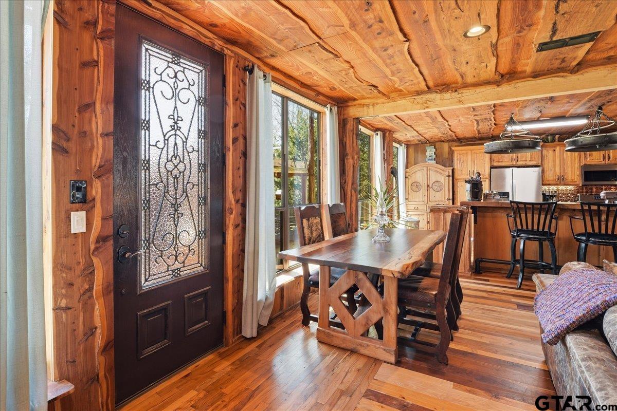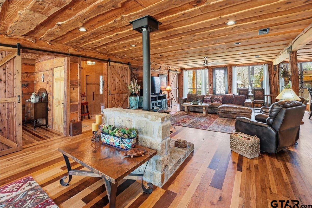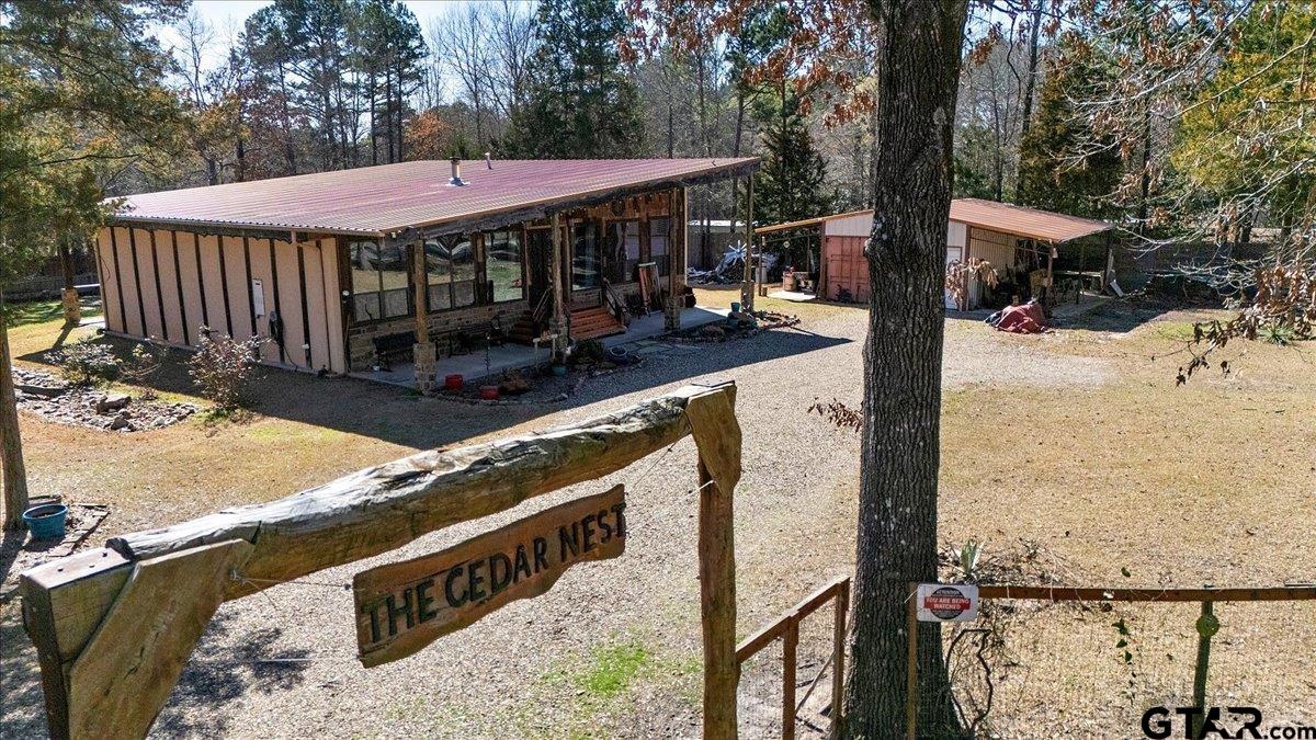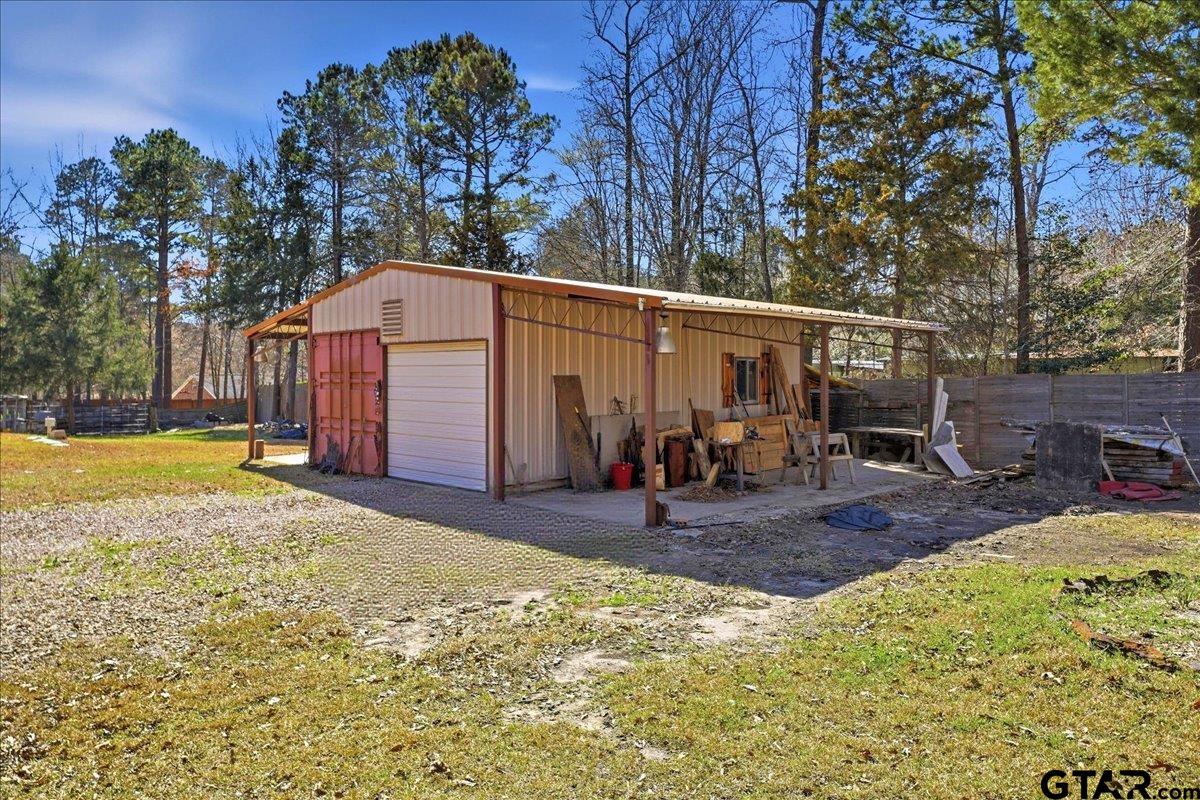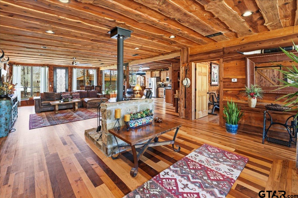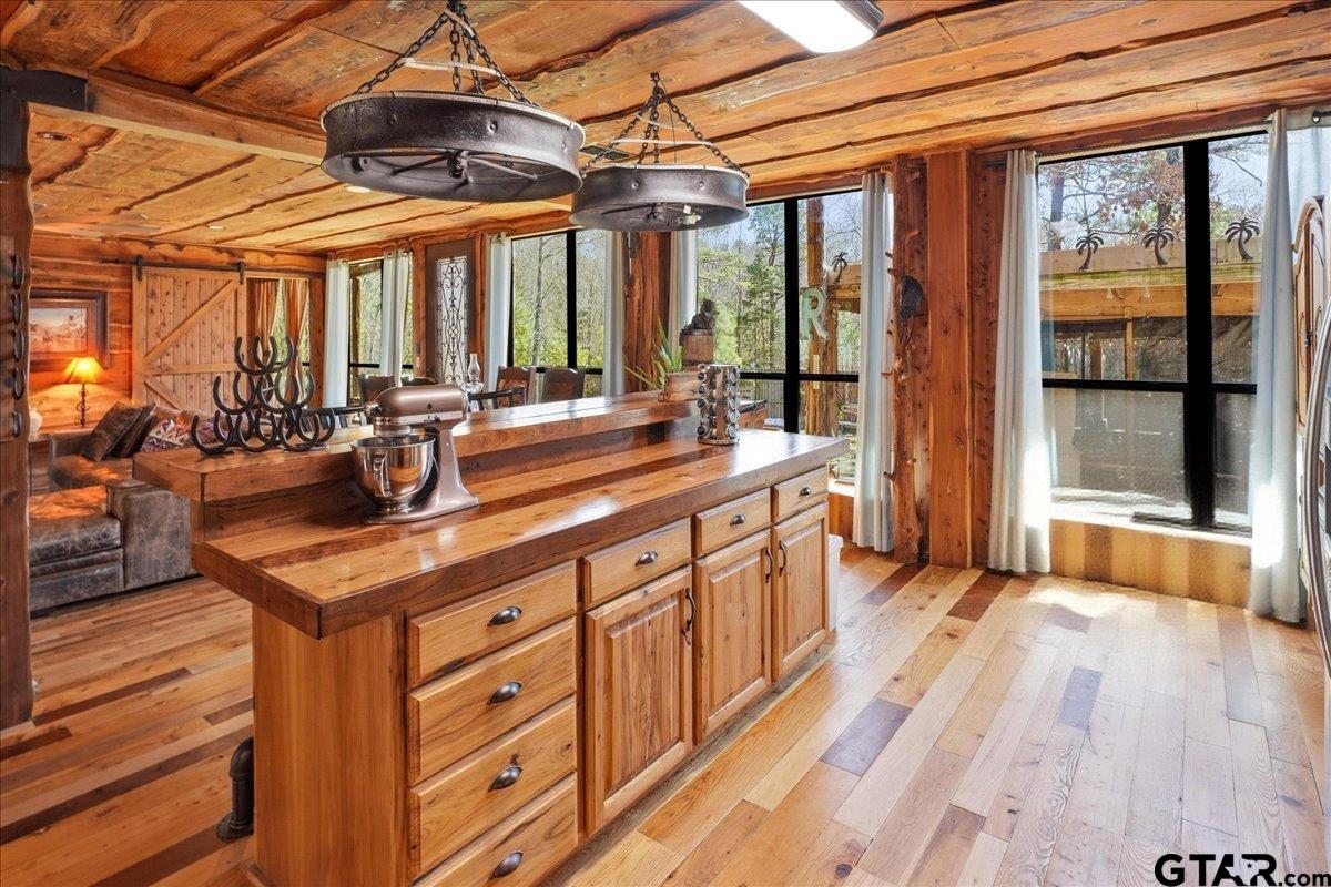 | Discover one of the most distinctive homes in Hawkins — just a short walk from the lake — where craftsmanship, durability, and character meet comfort at every turn. Custom built from the inside out, this property showcases remarkable attention to detail you simply won’t find in a typical home. Constructed with a steel frame build engineered to withstand up to an F4 tornado, this home offers exceptional structural integrity and peace of mind. Paired with R-30 insulation throughout, you’ll enjoy impressive energy efficiency and significant savings on electricity year-round — a rare combination of strength and smart design. Step inside to rich custom hardwood flooring throughout, highlighted by a stunning inlaid walnut floor in the primary suite — a true statement of artistry. The kitchen features beautifully crafted, custom-cut rustic hickory cabinetry, upgraded appliances, and thoughtful design that blends warmth with functionality. Handcrafted front and back doors add to the home’s unique charm and welcoming presence. The spacious primary bathroom offers a spa-like retreat with a luxurious walk-in shower and elevated finishes designed for relaxation. The open floor plan flows effortlessly into the oversized living area, where a wood-burning stove creates a cozy focal point — perfect for gathering on cool East Texas evenings. Outside, the nearly one-acre property is meticulously maintained and fully equipped for both relaxation and productivity. Front and back sprinkler systems keep the grounds lush year-round, while a 20x30 shop with 10-foot overhangs on both sides provides ample space for projects, storage, a workshop, or the ultimate hobby retreat. The property is fully fenced and gated, offering privacy and security for pets and outdoor living. From the handcrafted finishes to the storm-ready steel construction and energy-efficient design, every inch of this home reflects intentional planning and pride of ownership. A truly rare and resilient find. | |