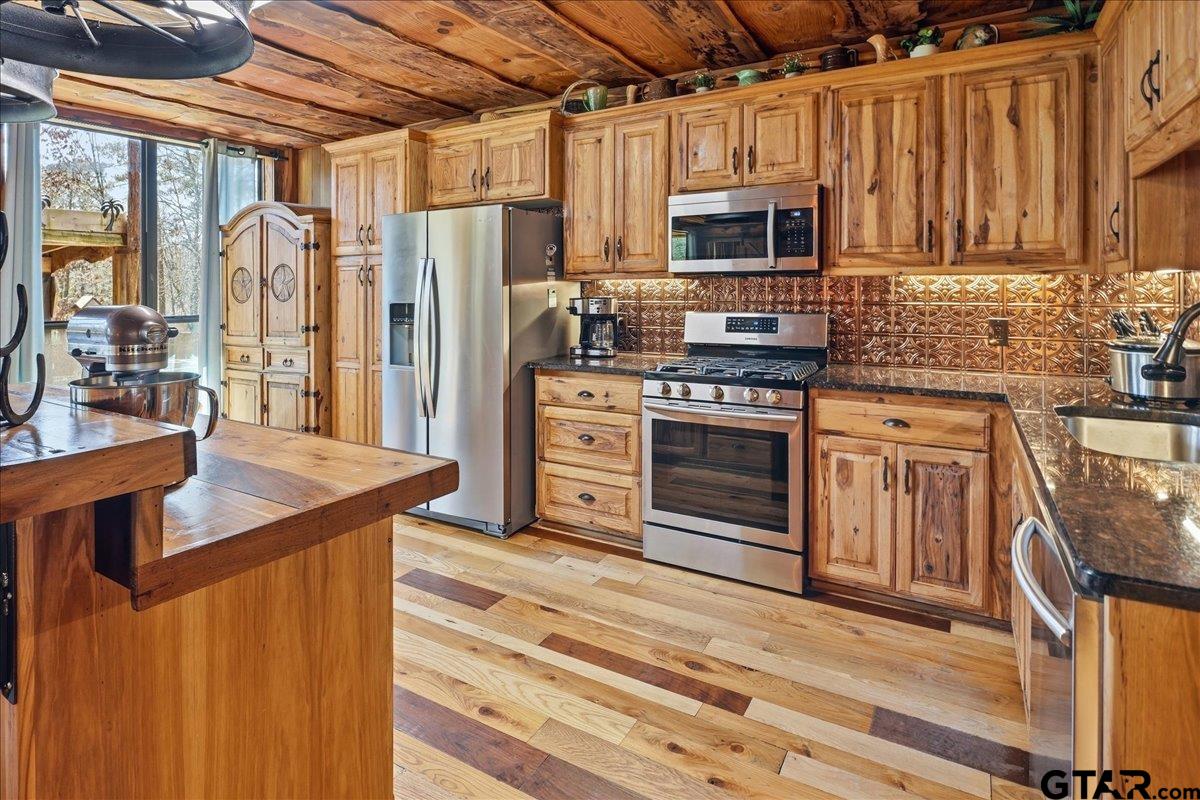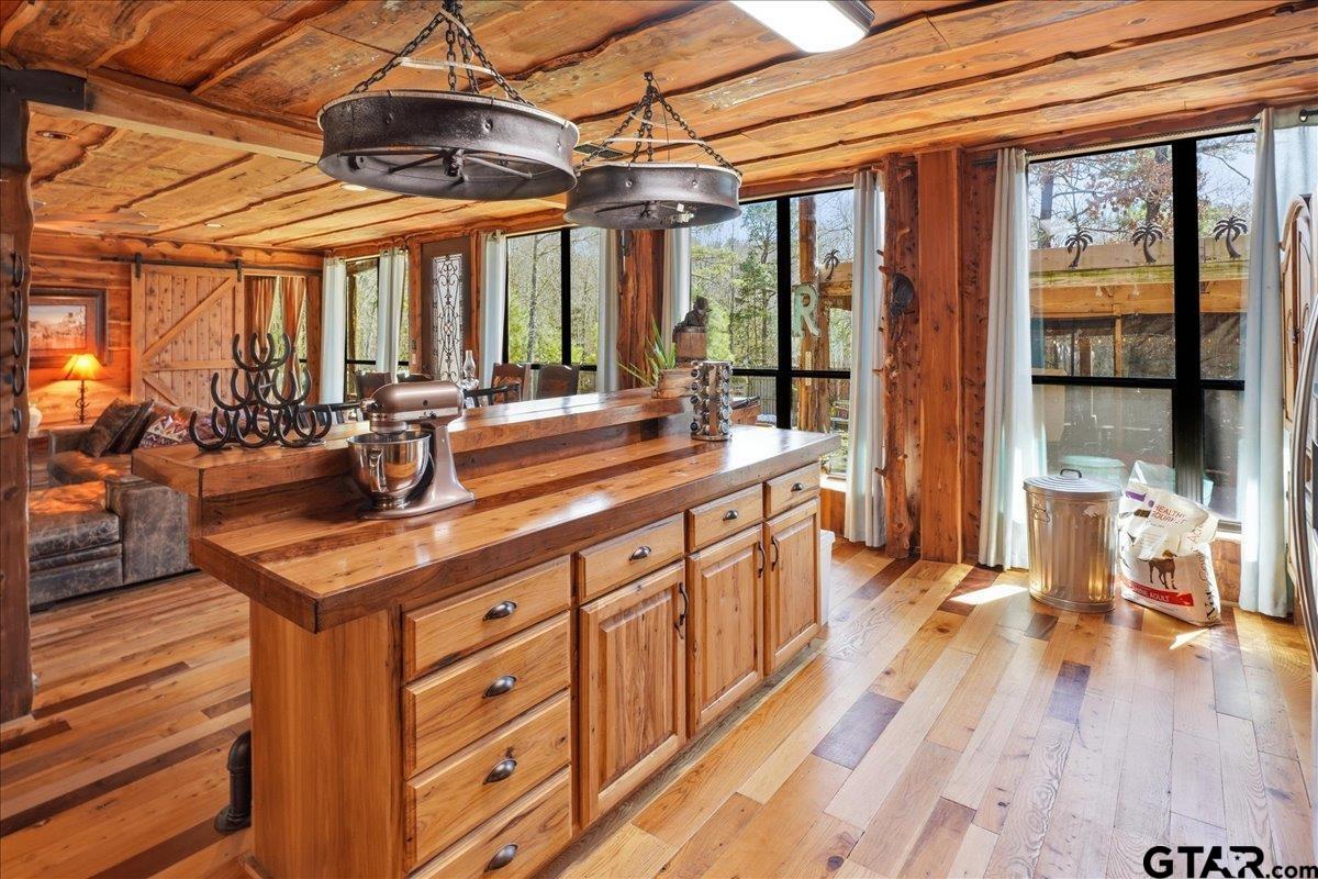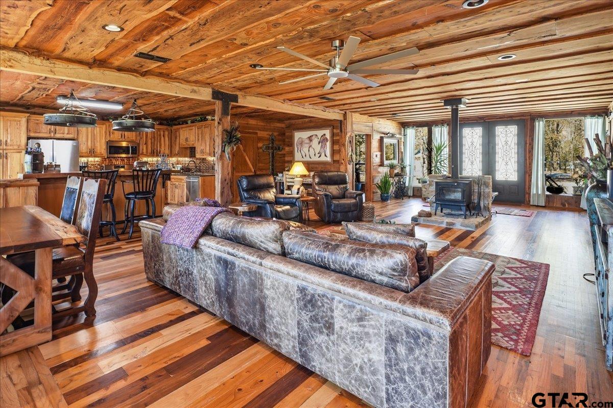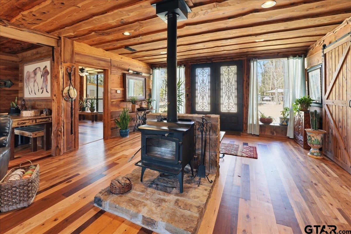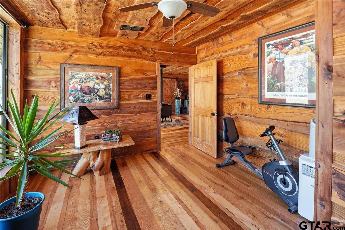 | Discover one of the most distinctive homes in Hawkins — just a short walk from the lake — where craftsmanship, durability, and character meet comfort at every turn. Custom built from the inside out, this property showcases remarkable attention to detail you simply won’t find in a typical home. Constructed with a steel frame build engineered to withstand up to an F4 tornado, this home offers exceptional structural integrity and peace of mind. Paired with R-30 insulation throughout, you’ll enjoy impressive energy efficiency and significant savings on electricity year-round — a rare combination of strength and smart design. Step inside to rich custom hardwood flooring throughout, highlighted by a stunning inlaid walnut floor in the primary suite — a true statement of artistry. The kitchen features beautifully crafted, custom-cut rustic hickory cabinetry, upgraded appliances, and thoughtful design that blends warmth with functionality. Handcrafted front and back doors add to the home’s unique charm and welcoming presence. The spacious primary bathroom offers a spa-like retreat with a luxurious walk-in shower and elevated finishes designed for relaxation. The open floor plan flows effortlessly into the oversized living area, where a wood-burning stove creates a cozy focal point — perfect for gathering on cool East Texas evenings. Outside, the nearly one-acre property is meticulously maintained and fully equipped for both relaxation and productivity. Front and back sprinkler systems keep the grounds lush year-round, while a 20x30 shop with 10-foot overhangs on both sides provides ample space for projects, storage, a workshop, or the ultimate hobby retreat. The property is fully fenced and gated, offering privacy and security for pets and outdoor living. From the handcrafted finishes to the storm-ready steel construction and energy-efficient design, every inch of this home reflects intentional planning and pride of ownership. A truly rare and resilient find. | |
