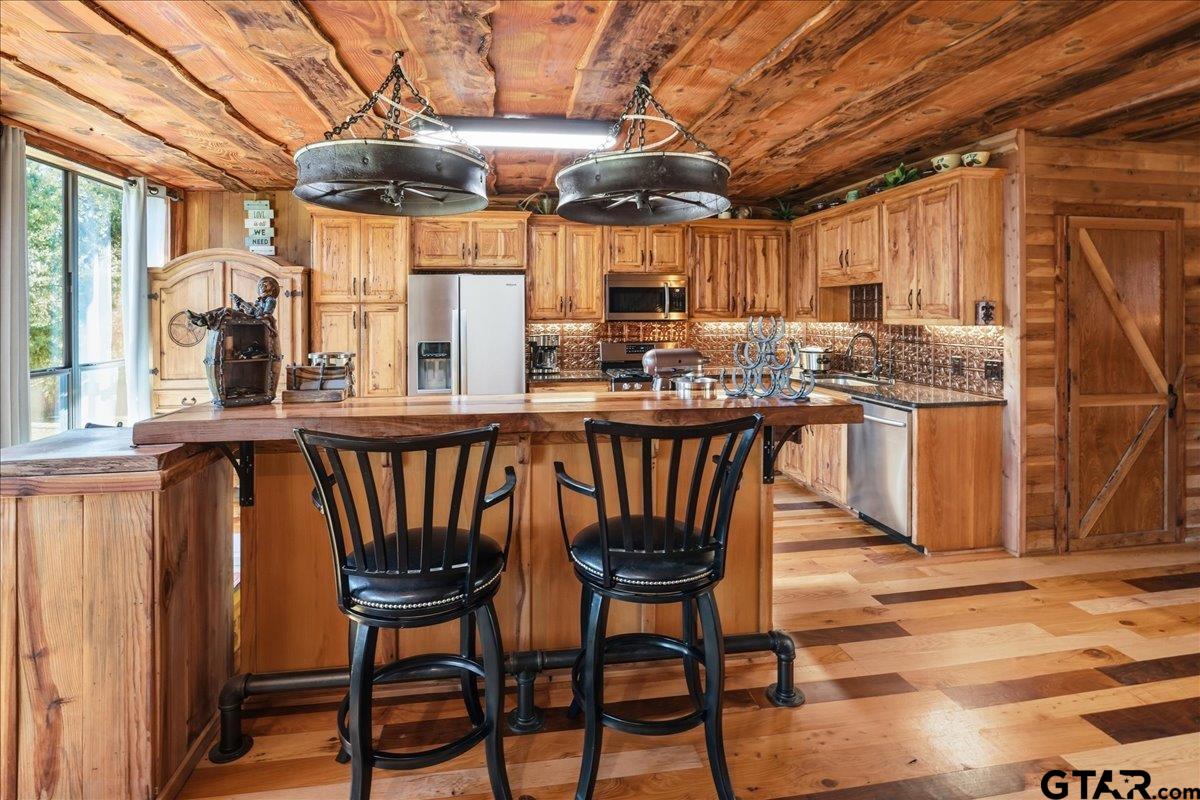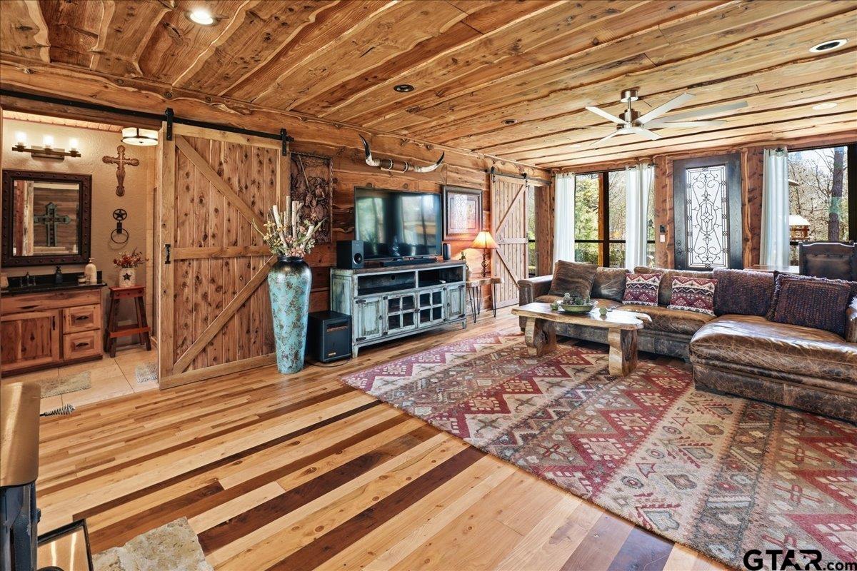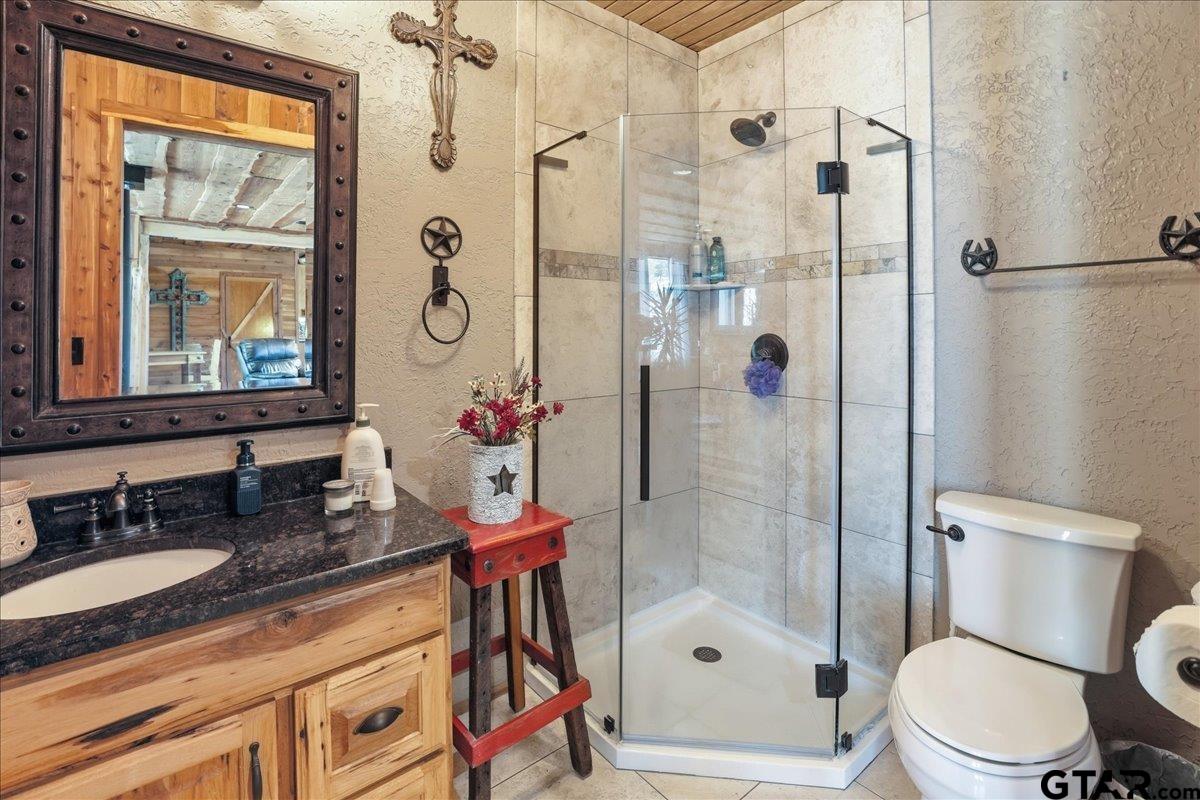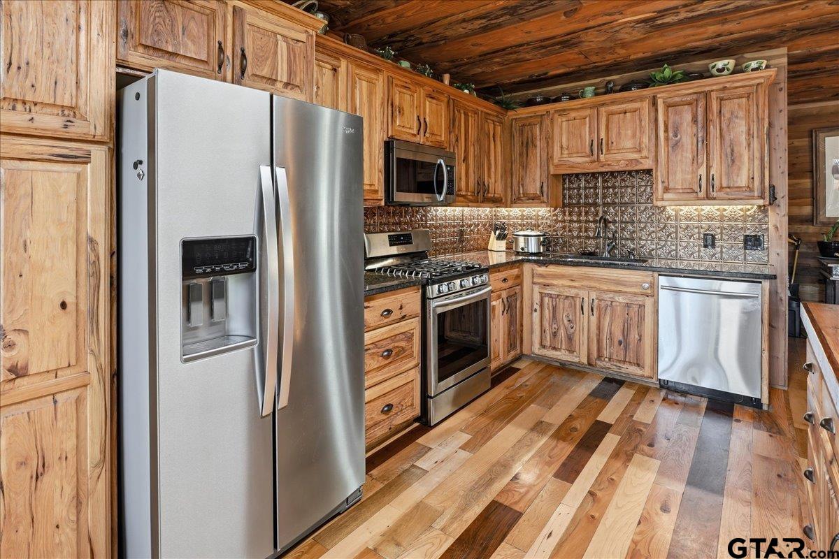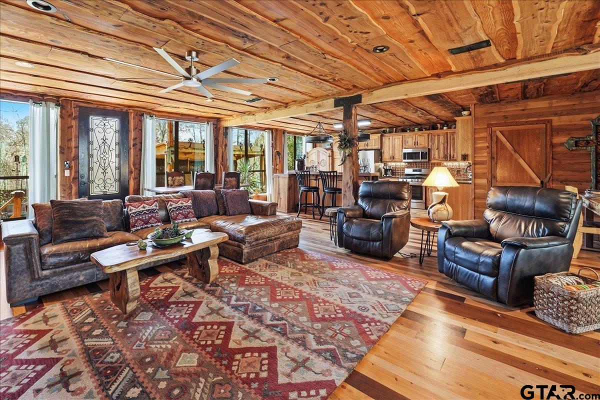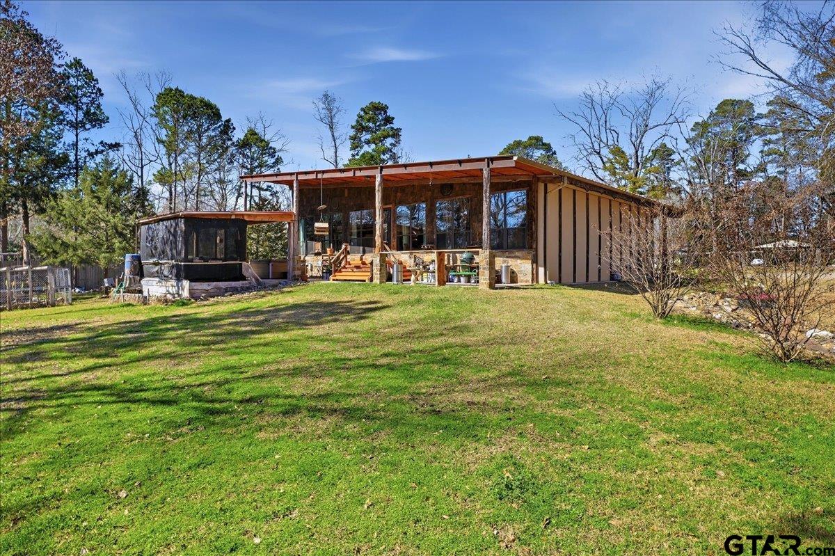 | Discover one of the most distinctive homes in Hawkins — just a short walk from the lake — where craftsmanship, durability, and character meet comfort at every turn. Custom built from the inside out, this property showcases remarkable attention to detail you simply won’t find in a typical home. Constructed with a steel frame build engineered to withstand up to an F4 tornado, this home offers exceptional structural integrity and peace of mind. Paired with R-30 insulation throughout, you’ll enjoy impressive energy efficiency and significant savings on electricity year-round — a rare combination of strength and smart design. Step inside to rich custom hardwood flooring throughout, highlighted by a stunning inlaid walnut floor in the primary suite — a true statement of artistry. The kitchen features beautifully crafted, custom-cut rustic hickory cabinetry, upgraded appliances, and thoughtful design that blends warmth with functionality. Handcrafted front and back doors add to the home’s unique charm and welcoming presence. The spacious primary bathroom offers a spa-like retreat with a luxurious walk-in shower and elevated finishes designed for relaxation. The open floor plan flows effortlessly into the oversized living area, where a wood-burning stove creates a cozy focal point — perfect for gathering on cool East Texas evenings. Outside, the nearly one-acre property is meticulously maintained and fully equipped for both relaxation and productivity. Front and back sprinkler systems keep the grounds lush year-round, while a 20x30 shop with 10-foot overhangs on both sides provides ample space for projects, storage, a workshop, or the ultimate hobby retreat. The property is fully fenced and gated, offering privacy and security for pets and outdoor living. From the handcrafted finishes to the storm-ready steel construction and energy-efficient design, every inch of this home reflects intentional planning and pride of ownership. A truly rare and resilient find. | |
