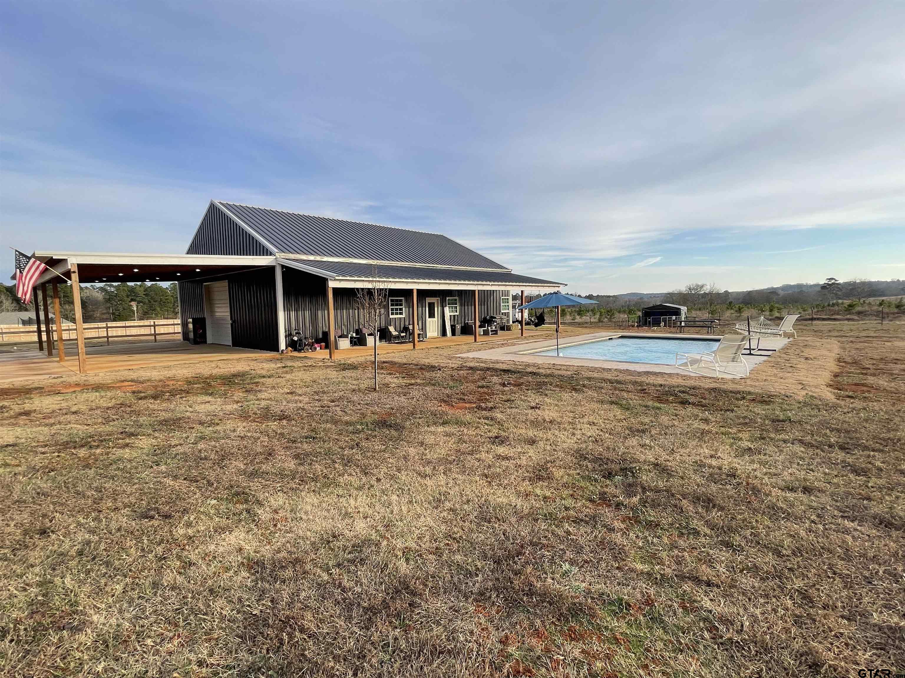| Home with land and pool in the award winning Bullard ISD! This home has 1.5 acres on two lots in the beautiful Bear Creek Estates Subdivision. This 4 bedroom 2 bath barndominium has plenty of storage space with large closets and rooms, an office, a 3 car carport, a front porch just made for rocking and viewing gorgeous sunsets while it overlooks the pool and property. There is plenty of room to build your dream home on this one of a kind property in Bullard. Call today to schedule your appointment. | |