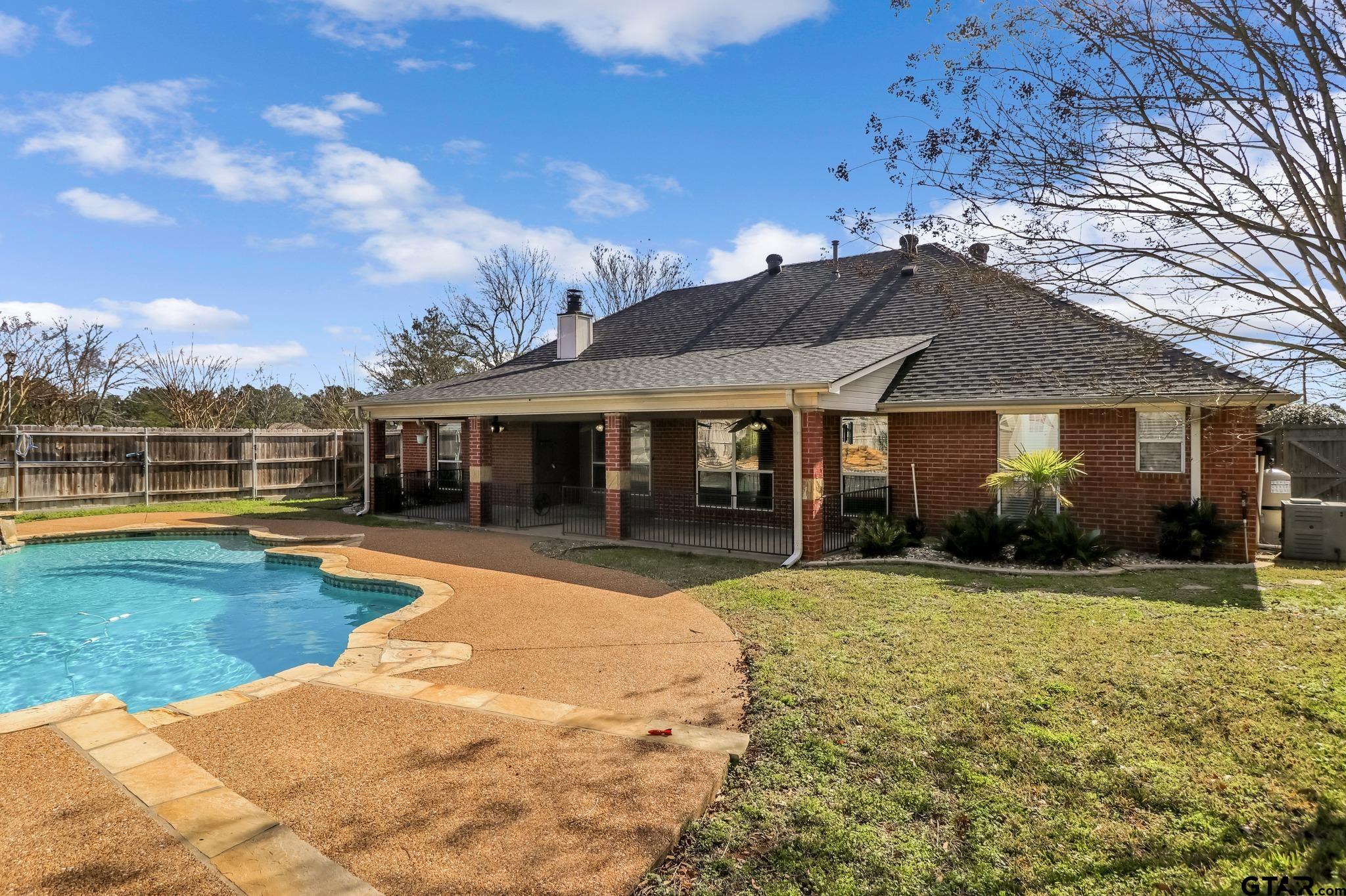 | Beautiful 4-bedroom, 2-bath home in the desirable Oasis South subdivision in Flint! This well-maintained home offers over 2,000 sq ft of comfortable living space with an open layout, vaulted ceilings, and a cozy gas-log fireplace in the living area. The kitchen features granite countertops, decorative backsplash, gas cooktop, breakfast bar, and a spacious pantry—perfect for everyday living and entertaining. The primary suite includes separate vanities, a soaking tub, walk-in shower, and a large walk-in closet. Additional bedrooms are generously sized and versatile for guests, office, or playroom use. Step outside to enjoy a beautifully landscaped backyard with a large covered patio, saltwater pool and spa, and an outbuilding with heating and cooling—ideal for a pool house, workshop, or extra storage. Located directly across from the neighborhood playground and park area, this home offers a wonderful community feel and outdoor enjoyment just steps away. Conveniently located near shopping, dining, and within Tyler ISD. This home is a must-see! | |