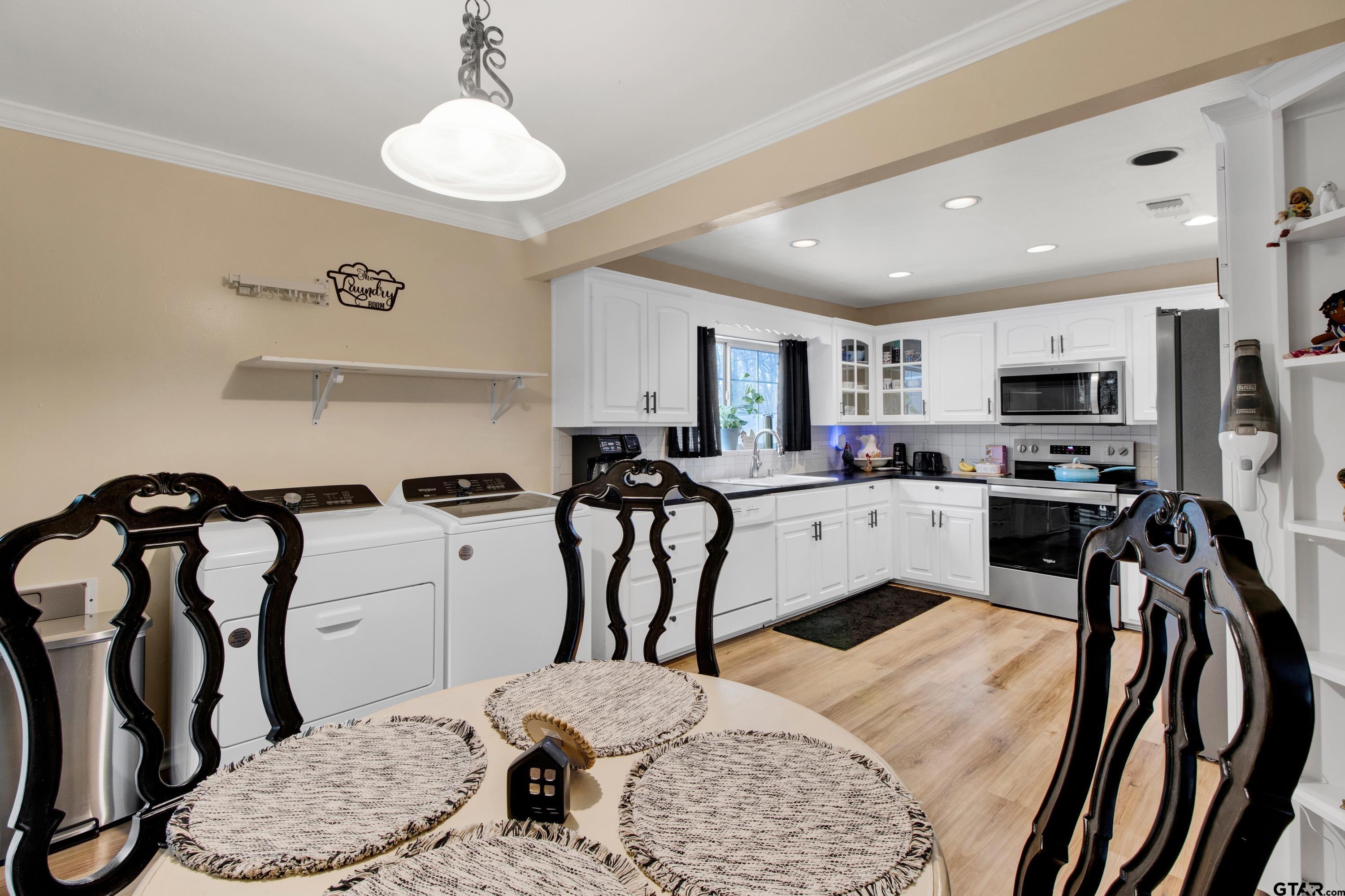 | Charming and cozy three bedroom two bath home in the heart of Kilgore offering comfort, value, and thoughtful updates. This inviting property features a covered back porch ideal for relaxing or entertaining, along with covered carport parking for up to three vehicles. Inside, the kitchen shares space with the dining area and washer and dryer, featuring white cabinets with black countertops for a clean and classic look. The home offers two full bathrooms and a warm, welcoming layout. Recent improvements include updated drainage and plumbing, new flooring and fresh paint, cabinet removal and updates in the kitchen and bedroom, and a newly installed and painted entry door. Located in the town of Kilgore, known for its small town charm and big heart and home of Kilgore College, this home offers an excellent opportunity with a comfortable size and an attractive price point ideal for a family or first time buyer. | |