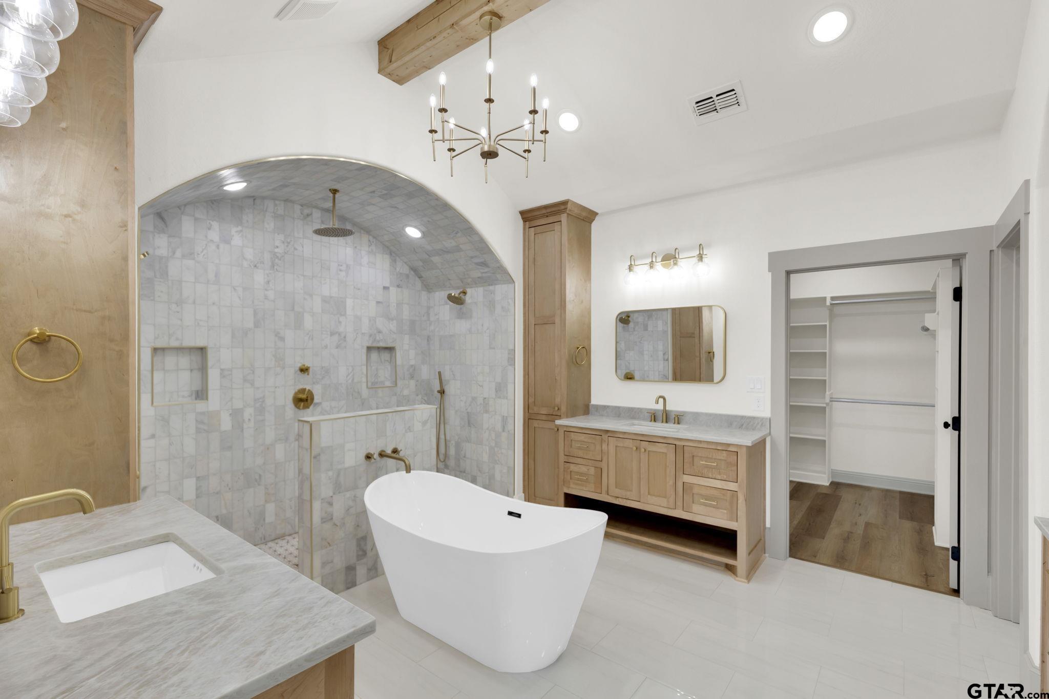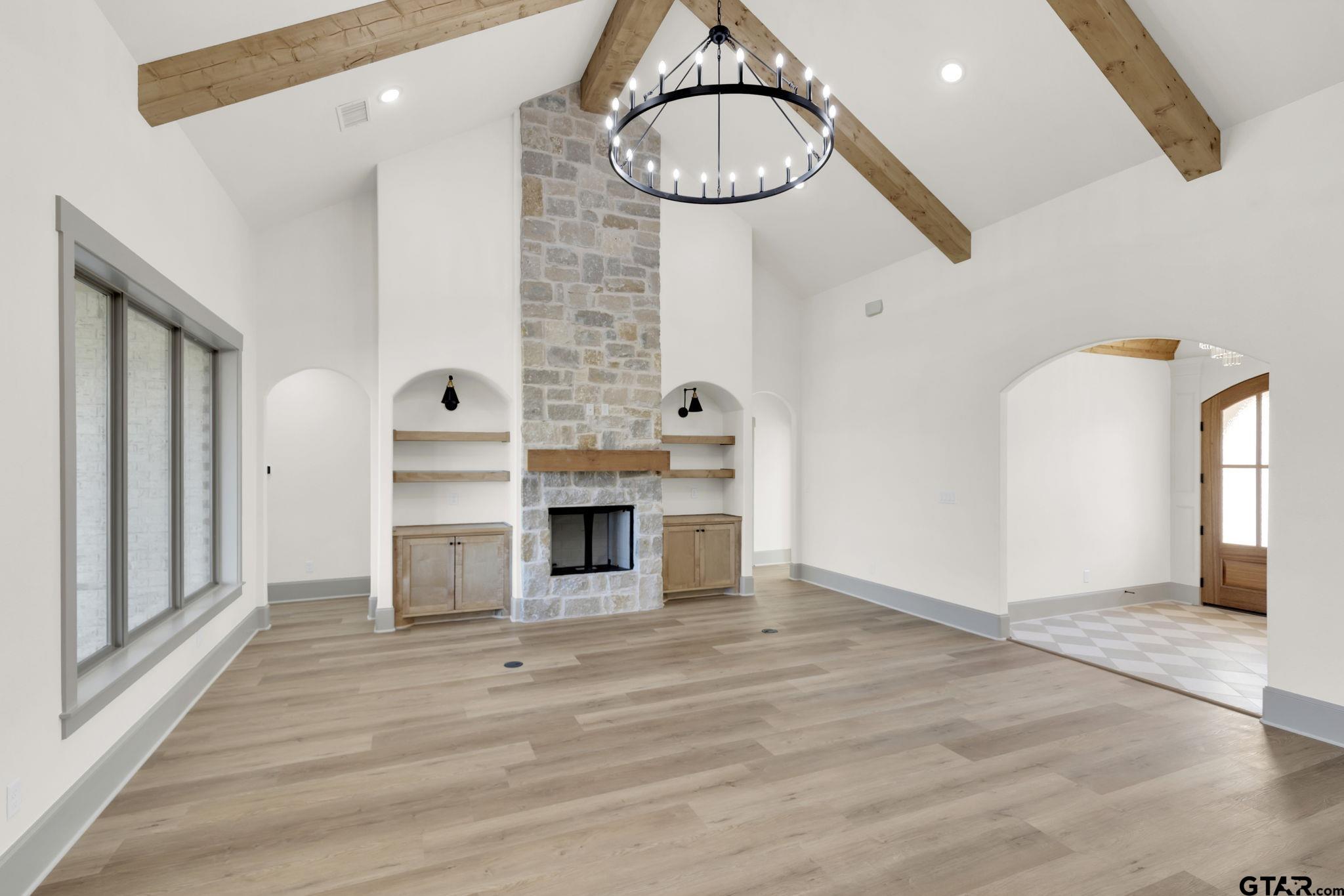 | Stunning 2,739 sq ft, 4-bedroom, 3.5-bath new construction home on a 0.5-acre lot in the desirable Gruene Valley Ranch subdivision. This property offers a 3-car garage, energy-efficient spray foam insulation, and high-end finishes throughout. The home features an open layout with vaulted ceilings, exposed wood beams, abundant natural light, and a large living area with a stone fireplace and built-in shelving. The kitchen flows seamlessly into the living space, creating an ideal setup for entertaining. A designated office provides the perfect workspace for remote professionals or home-based businesses. The luxurious master suite includes a spa-style bathroom with a freestanding tub, double vanities, an arched walk-through shower with elegant tilework and gold fixtures, and a spacious walk-in closet. Enjoy outdoor living in the fully fenced backyard, offering privacy and room for pets, play, or gatherings. | |