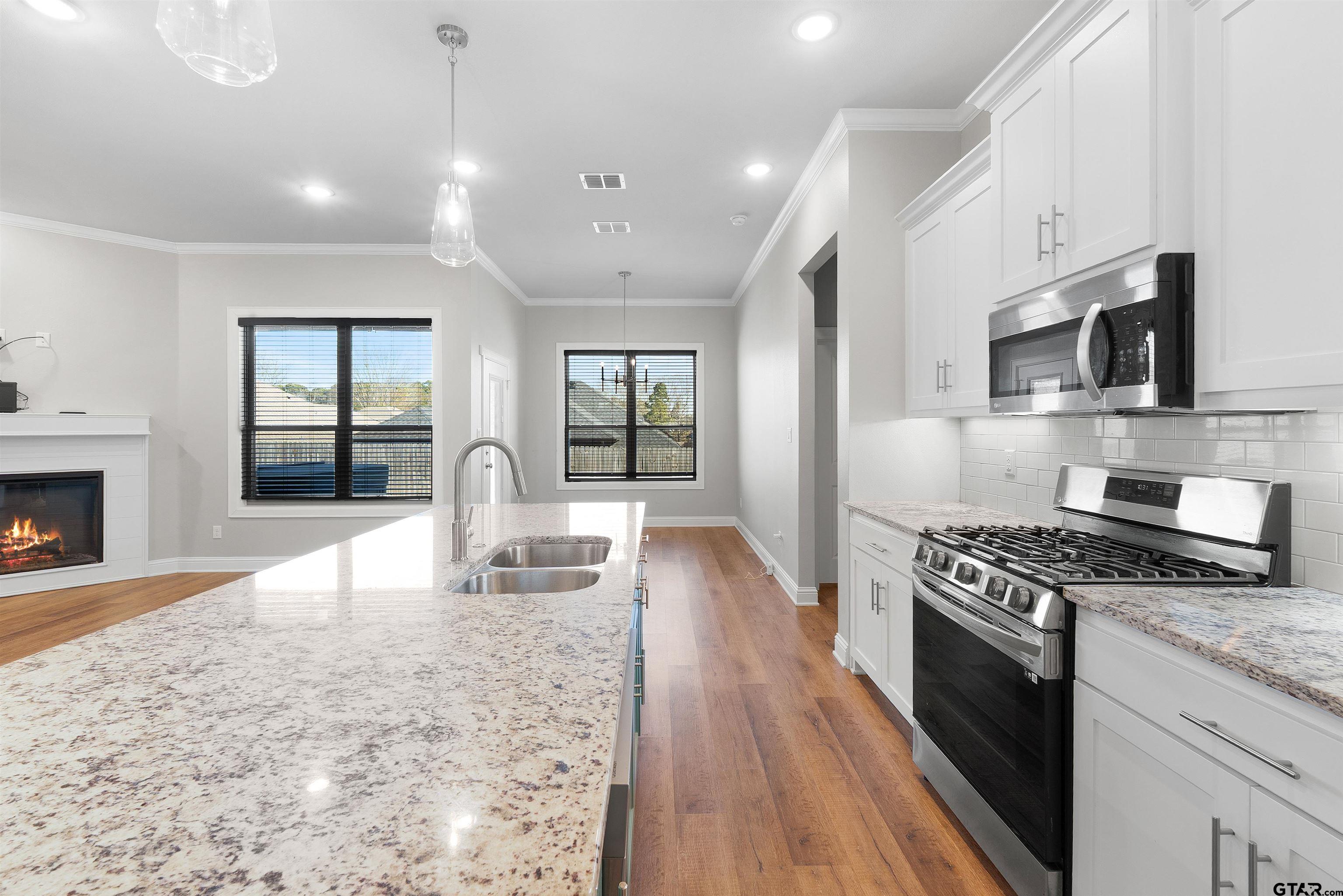 | This beautifully crafted custom-built home offers 1,800 square feet of thoughtfully designed living space with 4 bedrooms and 2 bathrooms, featuring a bright and inviting open-concept kitchen, living, and dining area ideal for both everyday living and entertaining. The kitchen is the heart of the home, showcasing granite countertops, a large island with seating, stainless steel appliances, custom cabinetry, and designer lighting and hardware, all complemented by stylish and durable luxury vinyl plank flooring throughout the main living spaces. The spacious primary suite is privately split from the other three bedrooms, creating the perfect owner’s retreat. The primary bathroom feels like a spa with a beautiful slipper soaking tub, large walk-in shower, and upscale finishes, while the huge primary closet conveniently connects directly to the laundry room — making daily living effortless and organized. Step outside to your private backyard oasis with a covered patio perfect for relaxing or entertaining, professionally landscaped yard with lush sodded grass, sprinkler system, gutters, and elegant uplighting, all fully enclosed by a 6-foot privacy fence for privacy and peace of mind. Located in the desirable Walnut Hill Estate subdivision in Flint, just minutes from Tyler shopping, dining, and schools, this home is ideal for buyers searching for newer homes in Flint TX, custom construction near Tyler, and move-in-ready properties in East Texas. This home blends modern design, thoughtful layout, and upscale finishes — a true standout in one of Flint’s most sought-after neighborhoods. | |