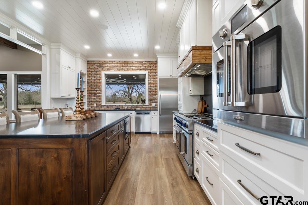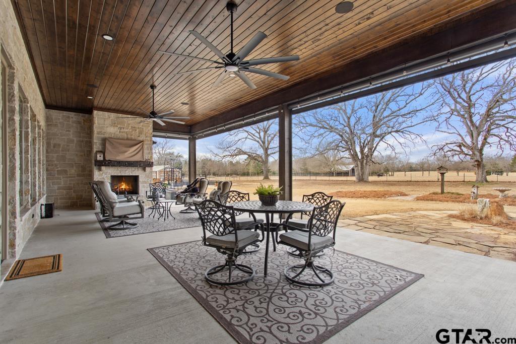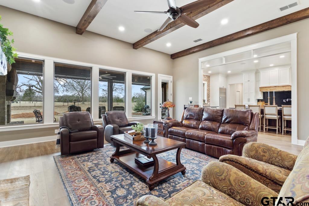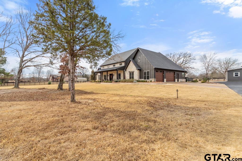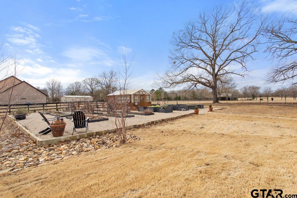 | This exceptional custom-built home sits on 6 picturesque acres in East Texas within Lindale ISD, offering luxury living with thoughtful design at every turn. The spacious layout includes 4 bedrooms, 3.5 bathrooms, a dedicated office, a walk-in pantry, and a charming bonus room off the dining area ideal for a wine collection or coffee bar. Designer details shine throughout, including a floor-to-ceiling stone fireplace, exposed brick accents, and wood beams that add warmth and character. The gourmet kitchen is a true centerpiece, featuring three ovens, a 6-burner gas range, ice maker, built-in refrigerator, oversized island, and a large window framing inviting views of the property. Practical upgrades include a whole-home water filtration system, whole-home generator, EV charger, and a spacious 3-car garage. Outdoor living is just as impressive with a covered patio complete with a fireplace, TV, electric shades and built-in grill—perfect for entertaining or relaxing year-round. The property also includes a 30x40 workshop with overhead doors, a 30x40 barn in the fenced pasture, and a 10x12 greenhouse surrounded by raised, plumbed garden beds. Enjoy peaceful surroundings with convenient access to Lindale, Tyler, and the Dallas area—this property offers space, functionality, and comfort in a truly special setting. | |