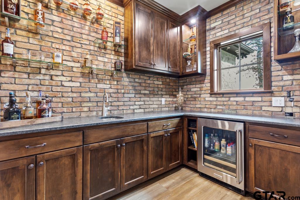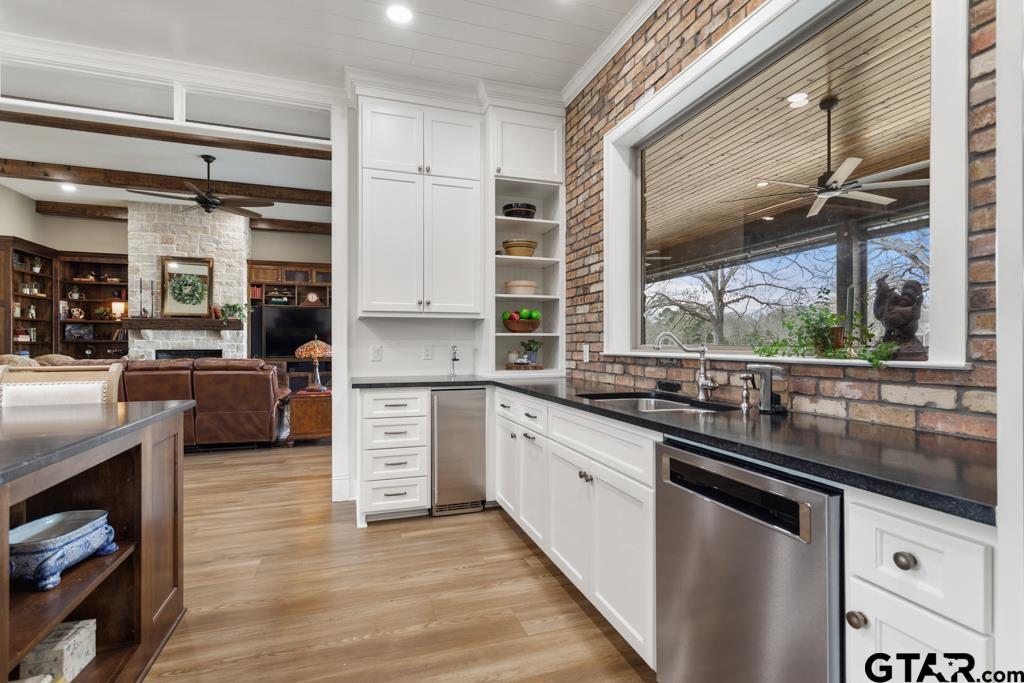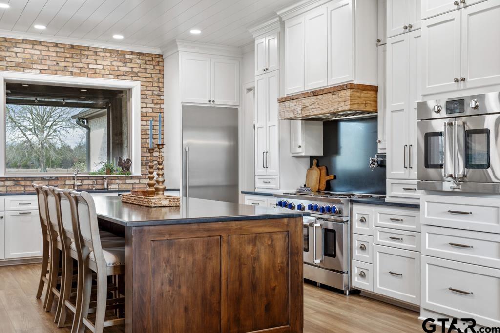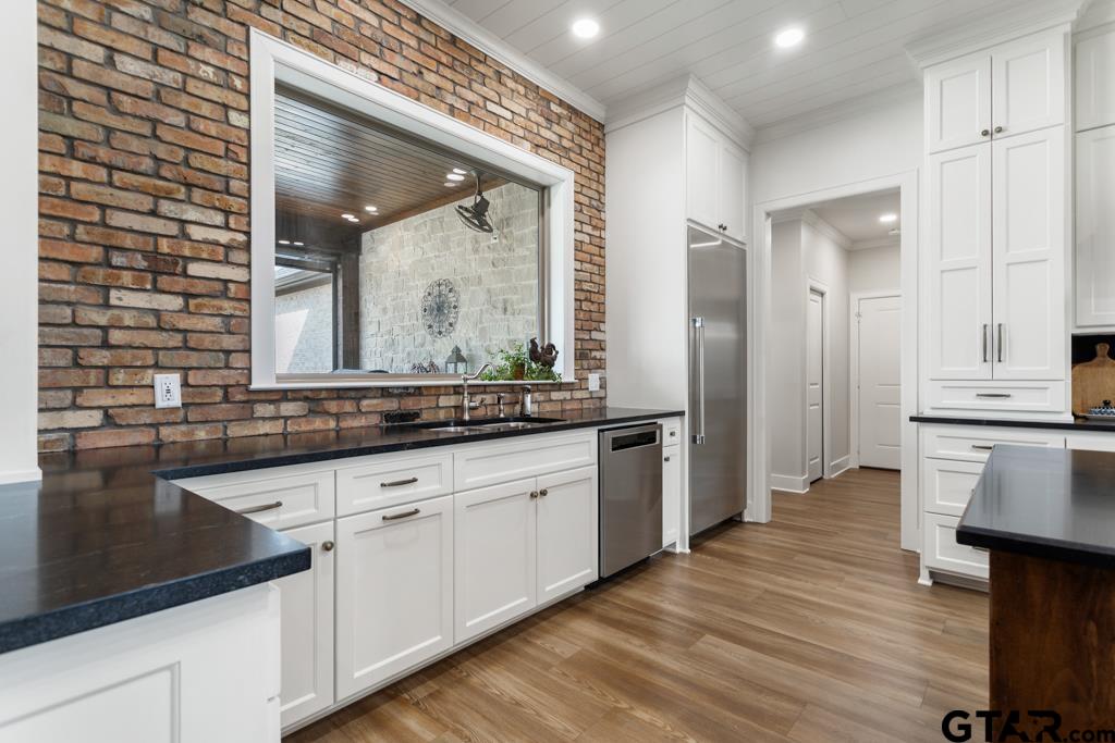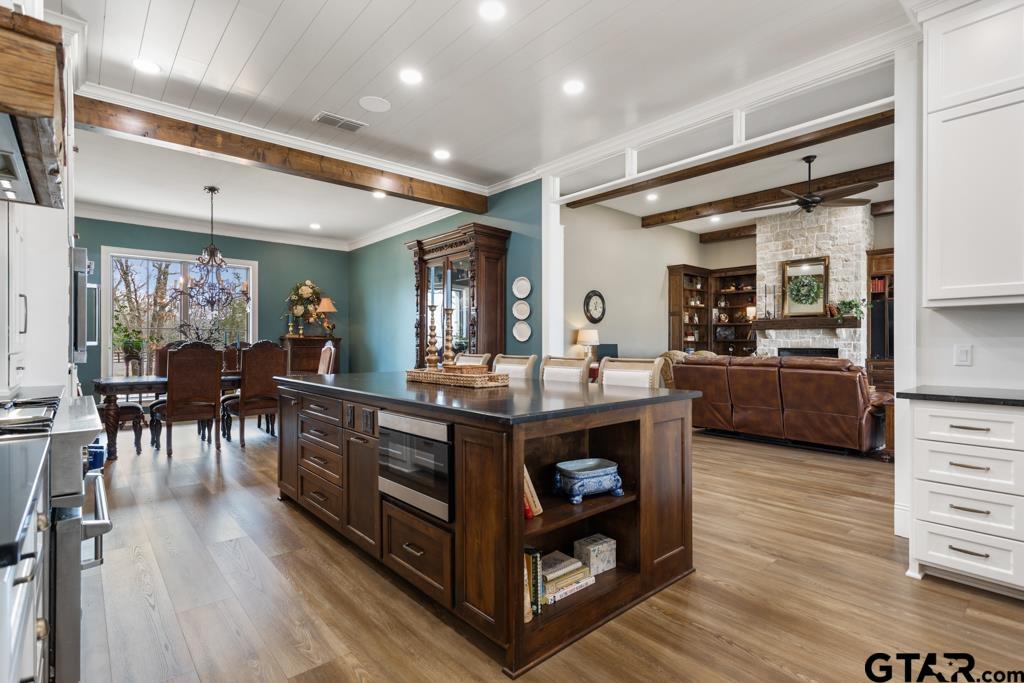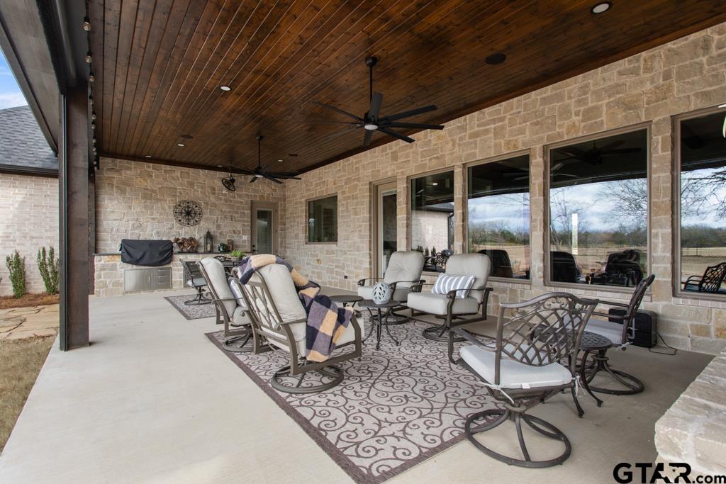 | This exceptional custom-built home sits on 6 picturesque acres in East Texas within Lindale ISD, offering luxury living with thoughtful design at every turn. The spacious layout includes 4 bedrooms, 3.5 bathrooms, a dedicated office, a walk-in pantry, and a charming bonus room off the dining area ideal for a wine collection or coffee bar. Designer details shine throughout, including a floor-to-ceiling stone fireplace, exposed brick accents, and wood beams that add warmth and character. The gourmet kitchen is a true centerpiece, featuring three ovens, a 6-burner gas range, ice maker, built-in refrigerator, oversized island, and a large window framing inviting views of the property. Practical upgrades include a whole-home water filtration system, whole-home generator, EV charger, and a spacious 3-car garage. Outdoor living is just as impressive with a covered patio complete with a fireplace, TV, electric shades and built-in grill—perfect for entertaining or relaxing year-round. The property also includes a 30x40 workshop with overhead doors, a 30x40 barn in the fenced pasture, and a 10x12 greenhouse surrounded by raised, plumbed garden beds. Enjoy peaceful surroundings with convenient access to Lindale, Tyler, and the Dallas area—this property offers space, functionality, and comfort in a truly special setting. | |