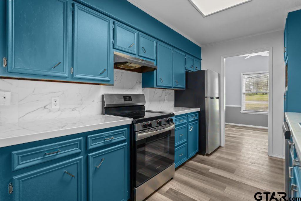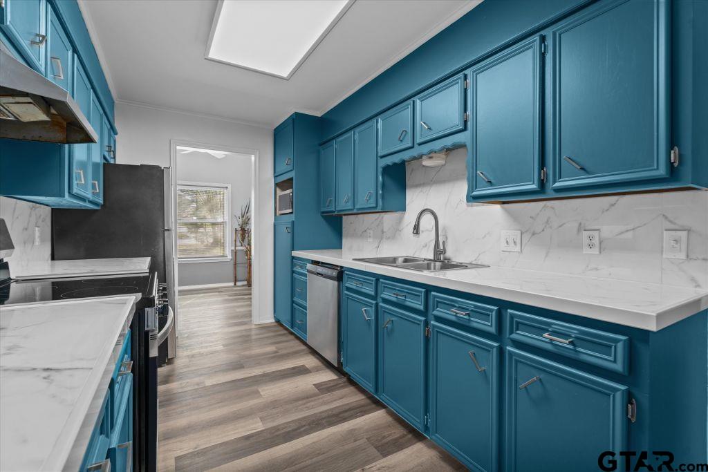 | Step into this beautifully renovated 3-bedroom, 2 bath home just under half an acre in Tyler ISD that blends the 1980s structural integrity with the sleek finishes of today. Conveniently located 4.5 miles from The Village at Cumberland for your shopping needs and is nestled in a established neighborhood with mature trees and a spacious 2 car garage away from the city noise and congestion. This home has undergone a massive transformation with updated low-e windows, fixtures and luxury vinyl plank throughout, vaulted ceilings in the living area, built-ins and a cozy fireplace. The kitchen features updated countertops, backsplash, a 5 burner flat top stainless steel stove, stainless steel dishwasher, new paint and hardware. Additional living and dining provide versatile areas for a second dining or office room. A spacious master suite includes a remodeled en-suite bath with a soaking tub, dual sink countertops with his and her walk in closets and a tiled shower. Two inviting guest rooms share an updated bath down the hall and a bright sun room leads to a large backyard with an extra storage building. Although the heavy lifting is done and move in ready without the "new construction" price, there is still enough room to add your personal touches. Come see this priced to sale modern classic, your new memories are waiting! | |