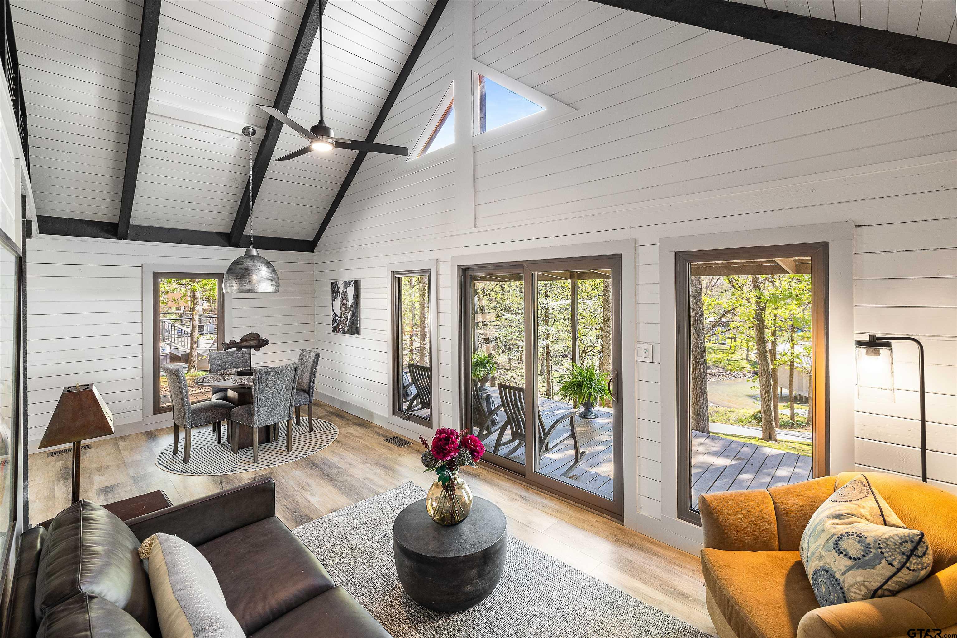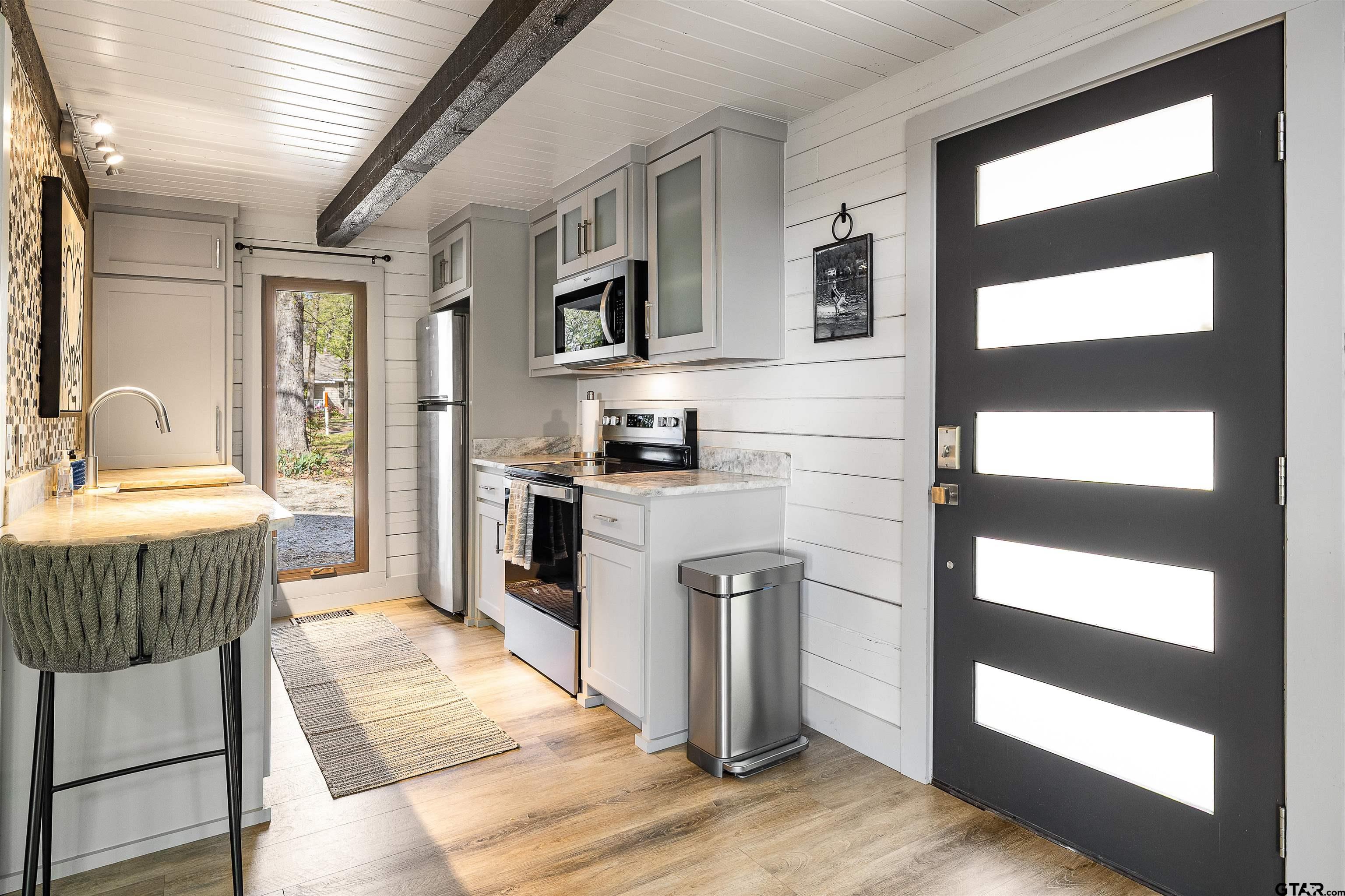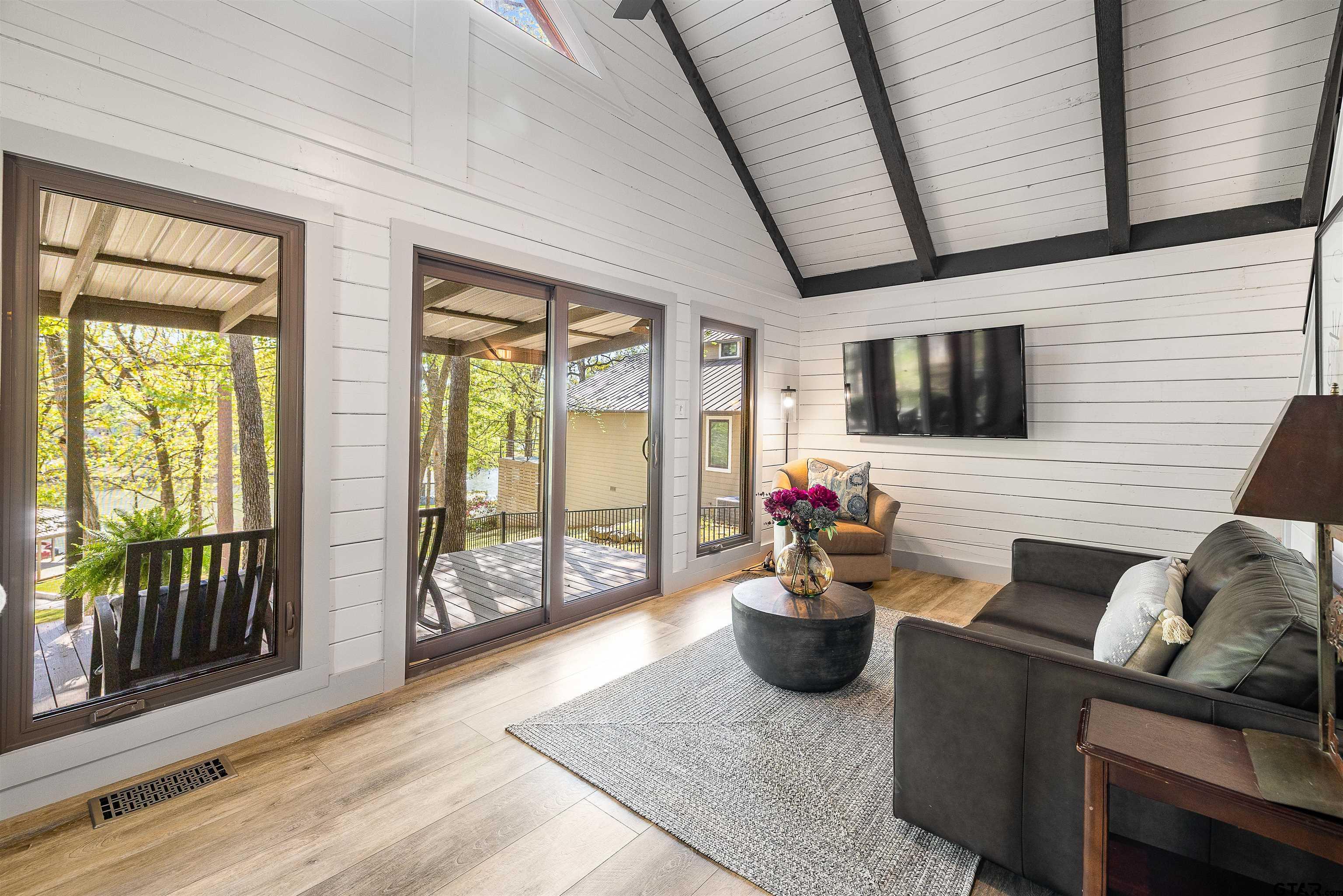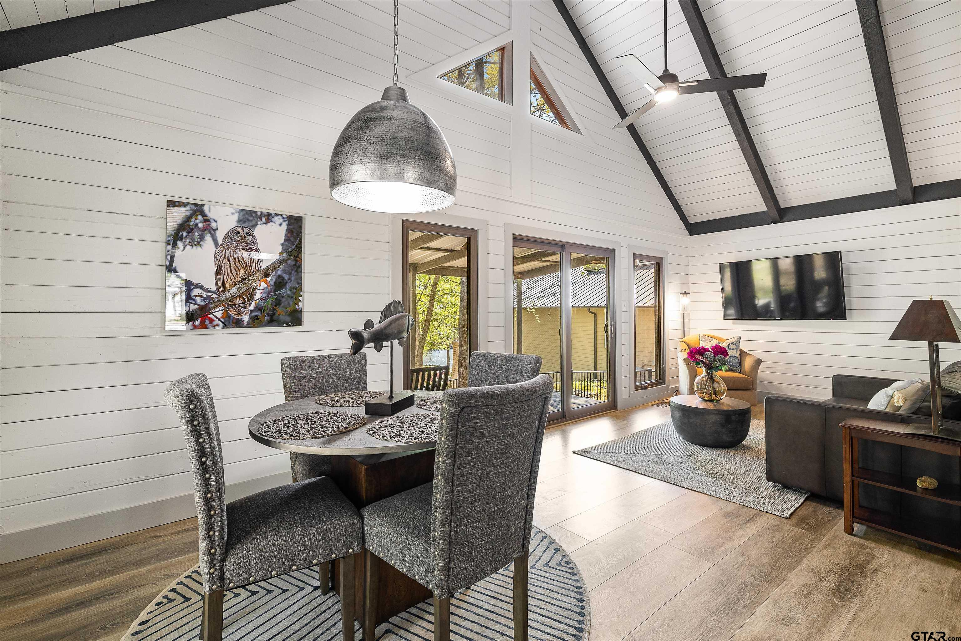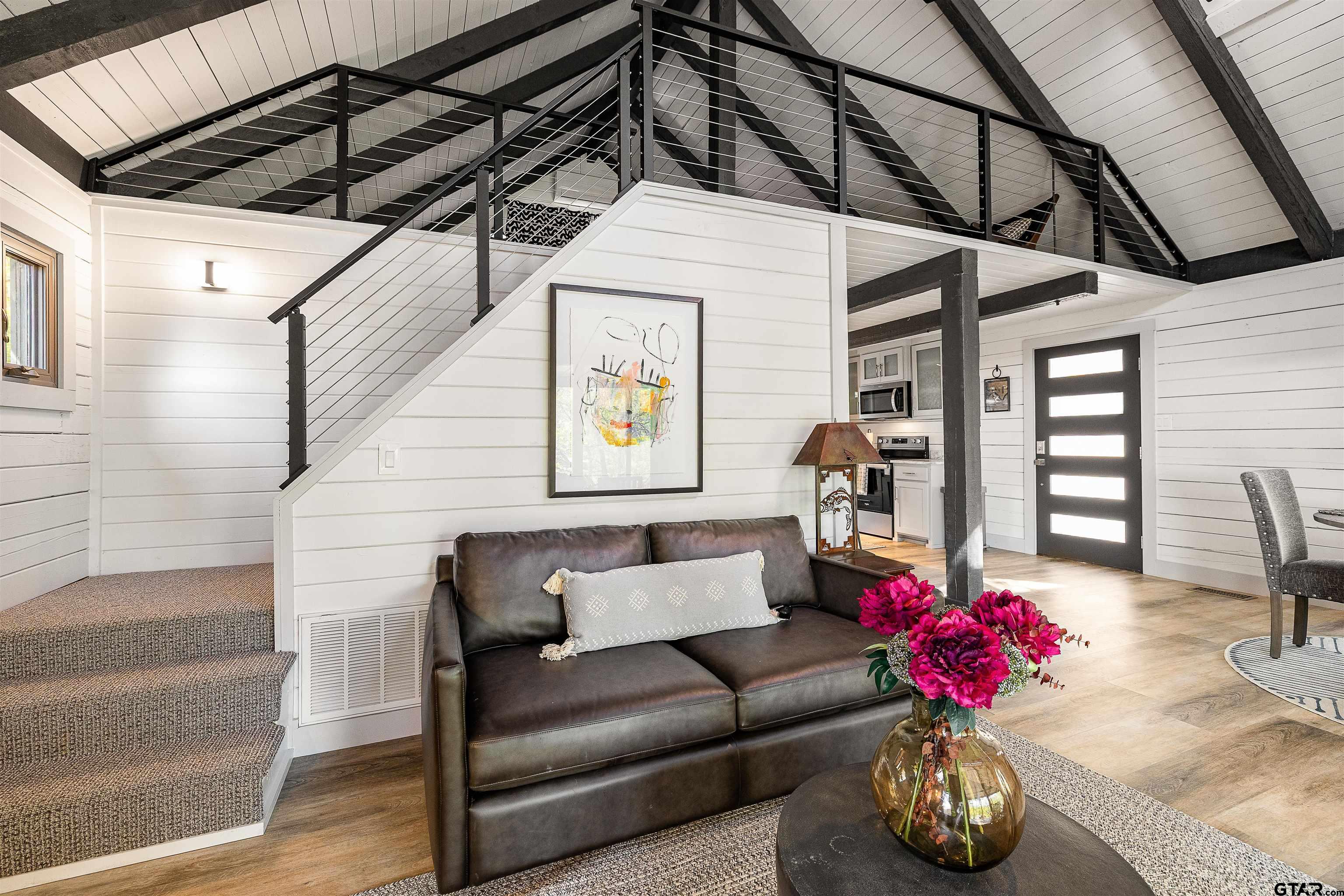| Enjoy lake life the way it’s meant to be in this cozy cabin with modern rustic finishes and beautiful water views. Spend your mornings on the covered back porch overlooking the lake and your afternoons on the water with easy access from the concrete cart path to the newly built boathouse with lift and storage. This 1 bed, 1 bath, with an oversized sleeping loft, comes mostly furnished, so pack a bag and start enjoying lake living right away. Interior features include stone kitchen countertops, designer tile, easy-maintenance vinyl flooring perfect for the lake, and a laundry closet with stack washer and dryer. Relax on the newly stained covered back porch, and enjoy the lake breeze and peaceful setting. Located in a calm cove just off the main lake, you get the best of both worlds, protected water with quick access to open water. Low maintenance property with great potential for weekend getaways, full-time living, or VRBO investment opportunity make this one a GEM for sure! | |