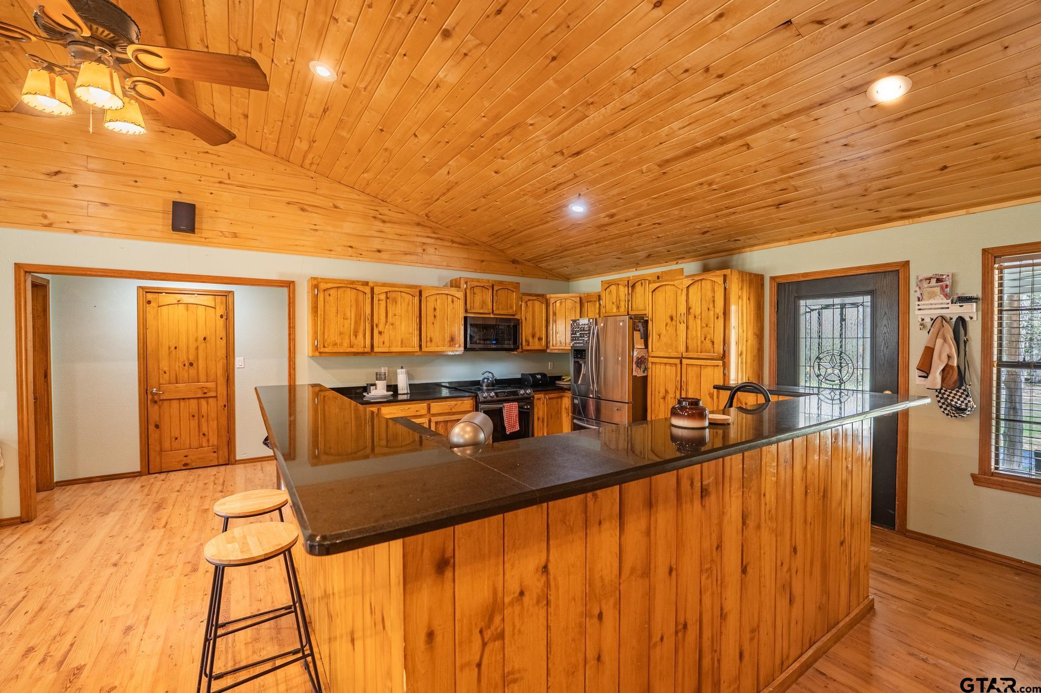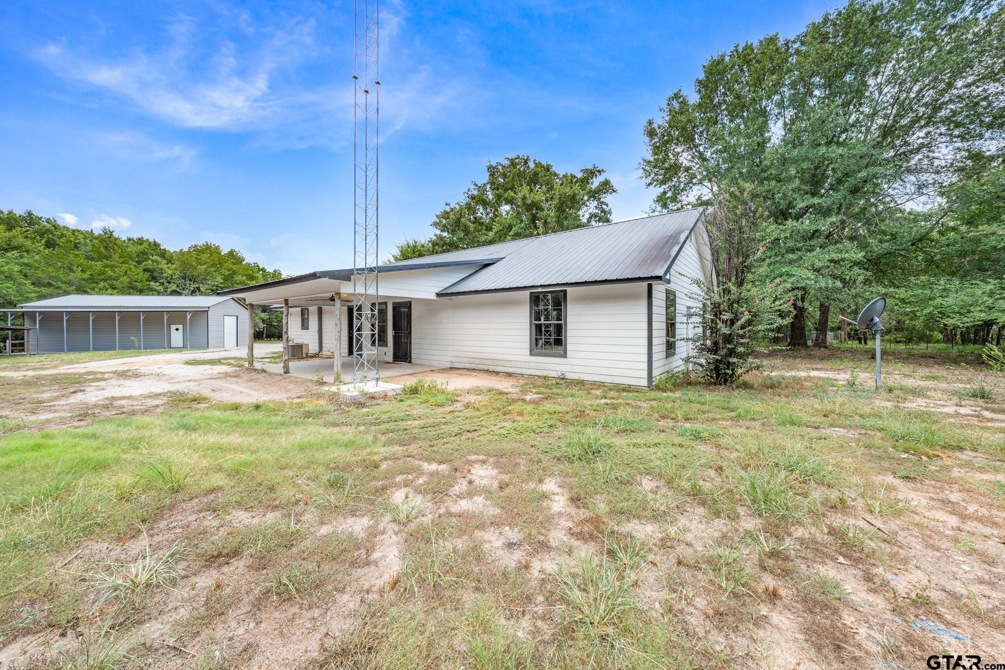 | Private wooded 8.4 acres comes with a workshop and 3 bedroom, 2 bathroom house! A tree-lined drive brings you past a pipe-fenced entrance. You'll notice a front porch that is perfect for soaking under the shade of trees. Inside the vaulted living room, a stone fireplace with seating draws your attention in a cabin-flair interior. An open floor plan allows you to cook while entertaining guests or family. An extra large island with breakfast bar seating, granite countertops, stainless steel appliances, and access to the back porch compliment the kitchen. With a split bedroom layout, the primary ensuite includes a walk-in shower and garden jacuzzi tub. Additional bonuses are a new HVAC in 2022, new screws in roof in 2024, new septic pump in 2024, and recessed lights. A back porch provides a spot for grilling or watching the wildlife. The 30' x 40' workshop comes with concrete floors, 2 roll up doors, 10' x 10' roll-up door at the front and 9' x 8' roll-up door on the side, 1 walk-thru door, and a 10' x 40' covered lean-to area for equipment or vehicles. A shed could be used for a chicken coop, other farm animals or for more equipment storage. Make this wooded retreat your exclusive hideaway! | |