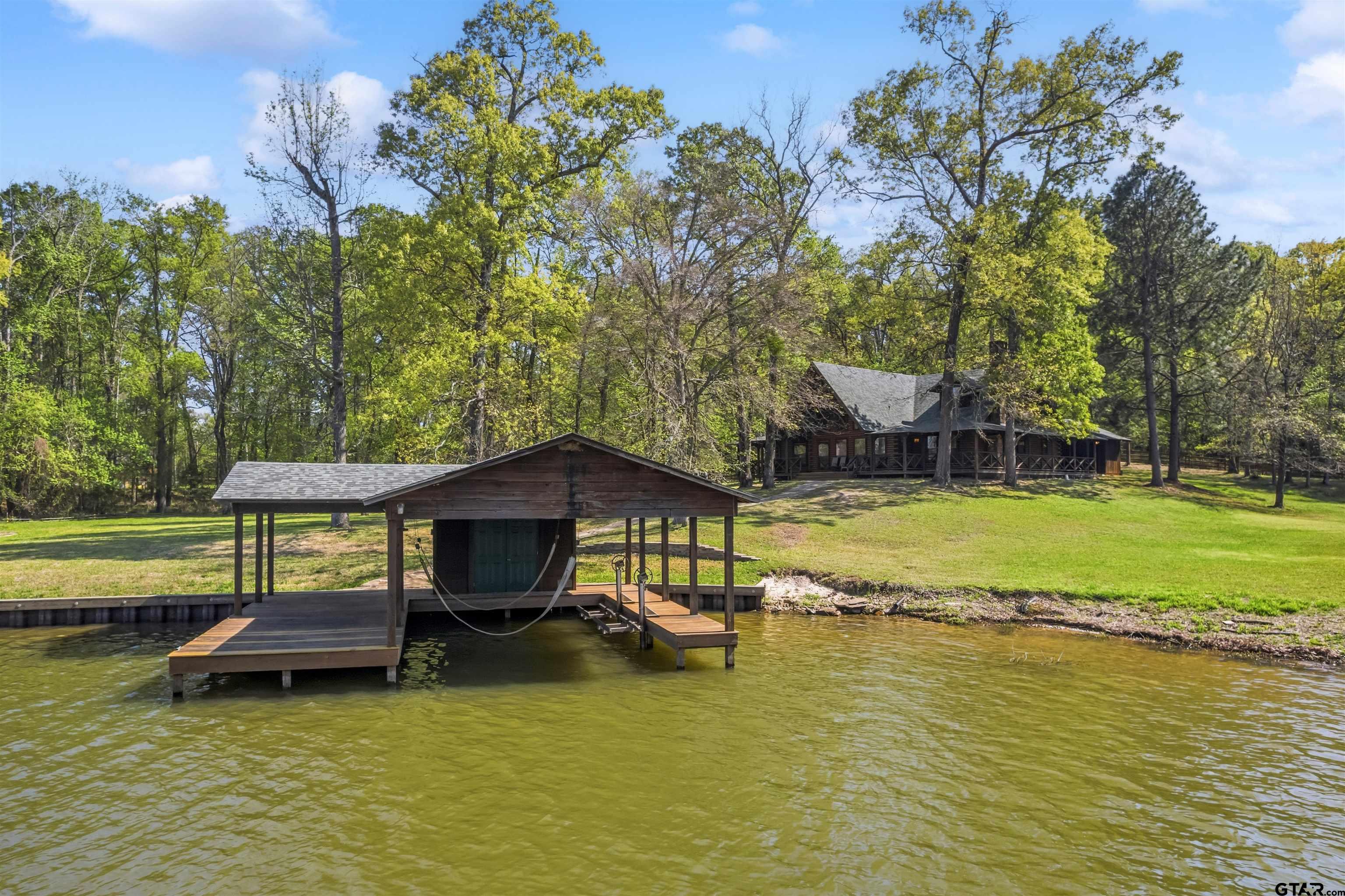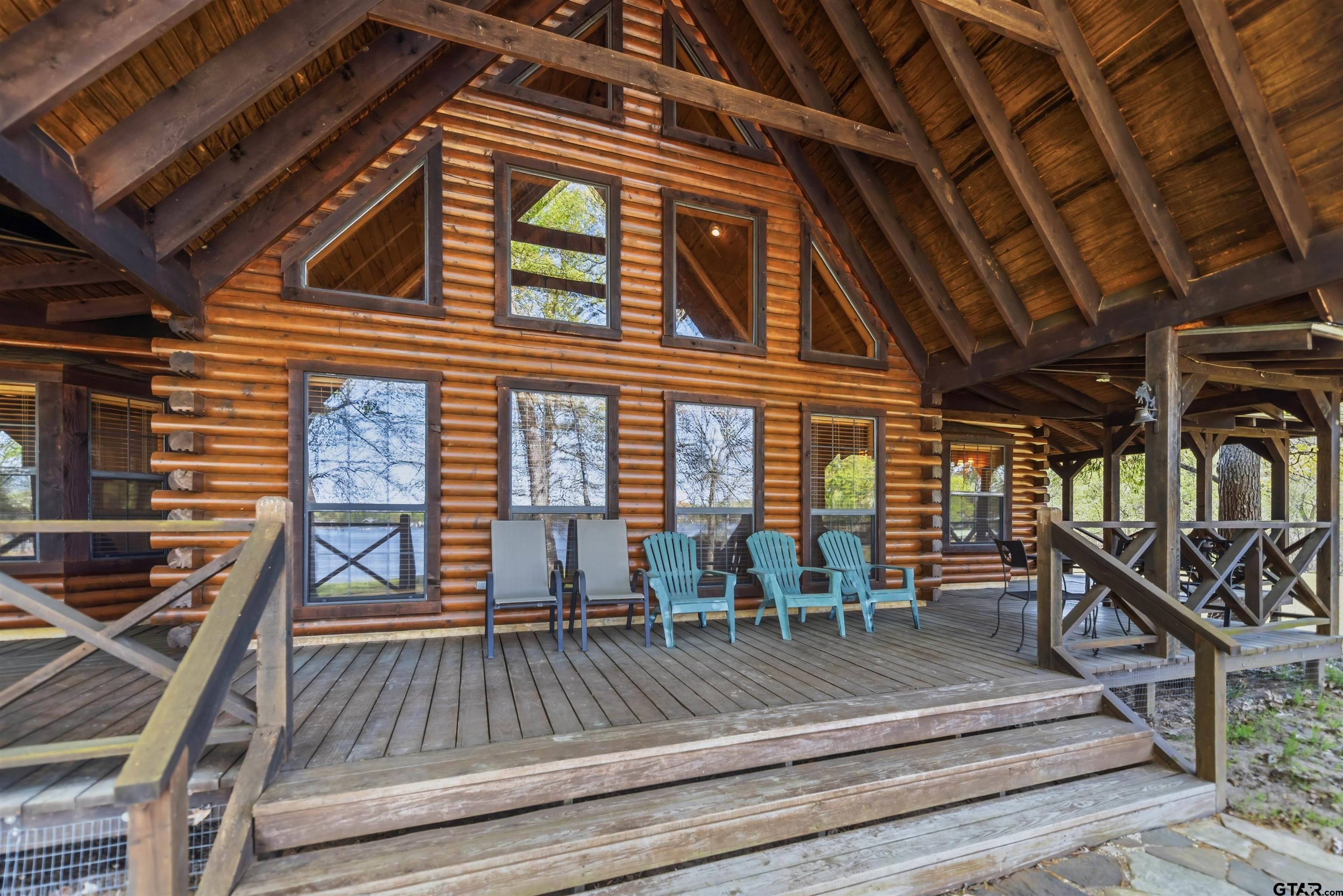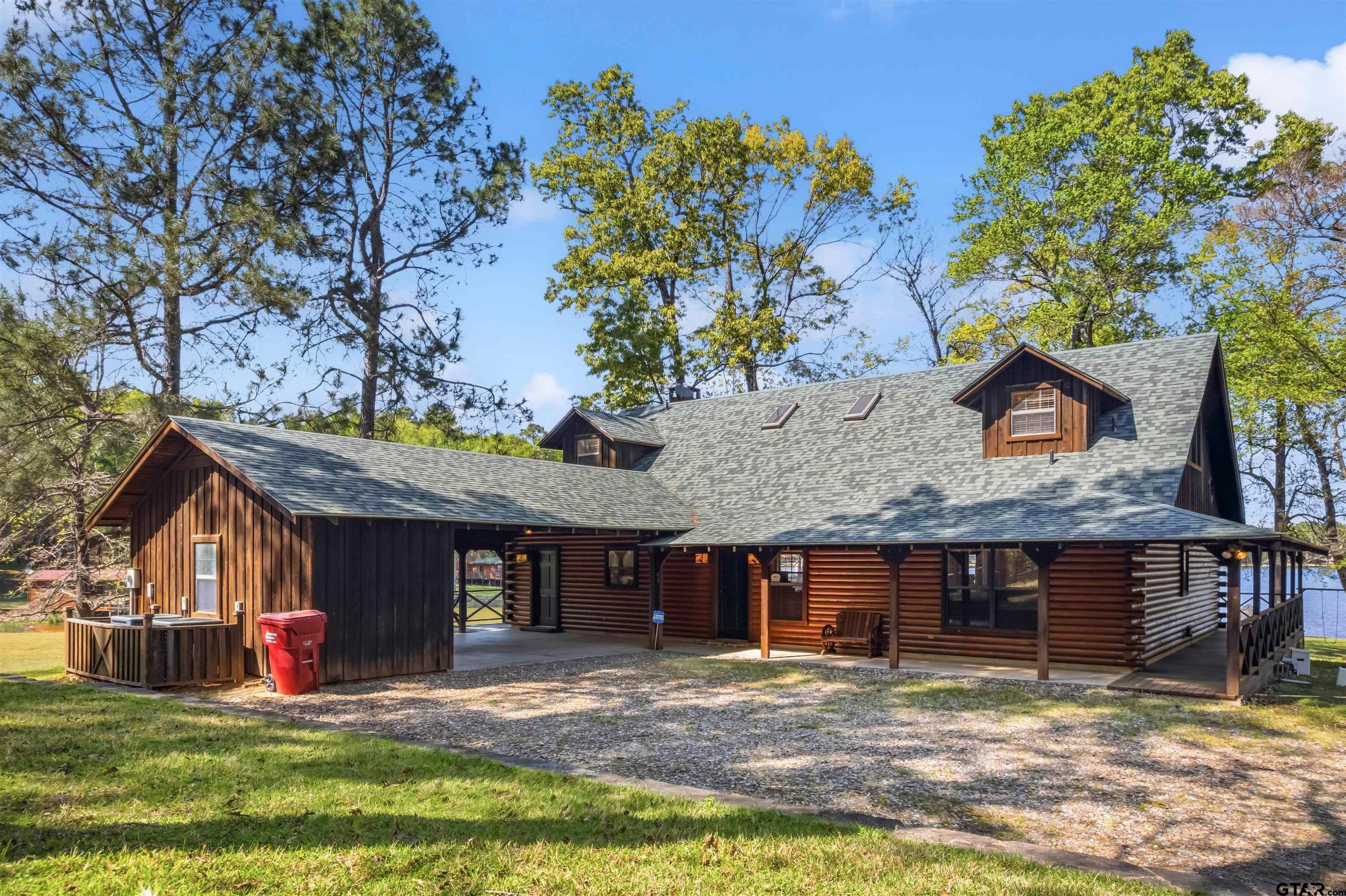 | Welcome to your private, nearly three-acre haven nestled in the prestigious Panther Creek community on Lake Cypress Springs. This custom-built, full-scribe Satterwhite log home perfectly blends rustic elegance with modern luxury, all while offering an exceptional 550 feet (approx) of waterfront access on one of East Texas's most desirable lakes. This 4 bedroom, 3.5 bath custom Log Home Design features hand-hewn logs, showcasing craftsmanship and providing a warm, inviting atmosphere. The interior is designed for comfort and entertaining; featuring a large open kitchen, a great room with a wall full of windows overlooking the lake, a large stone fireplace in a side nook, gorgeous natural stone flooring, and a back porch large enough to help you fully embrace the lake lifestyle with family and friends. Then when you need a little personal space, head upstairs to one of two split master bedroom en suites! Known for its pristine waters and family-friendly atmosphere, Lake Cypress Springs is the ideal location for boating, fishing, and enjoying the outdoors. And the Panther Creek subdivision, known for its beautiful homes, wooded serenity and quiet coves, is located directly across from the perfect neighbor -- hundreds of therapeudic wooded acres. Furthermore, it's also located on the north side of the lake, which makes it more easily accessible. Situated on 4 lots, this property provides unmatched space so you have room for privacy, landscaping, and outdoor activities; truly a rare find on the lake. A place like this offers a unique opportunity to enjoy discovering the endless possibilities for customizing your perfect waterfront estate. Schedule your private showing today! | |