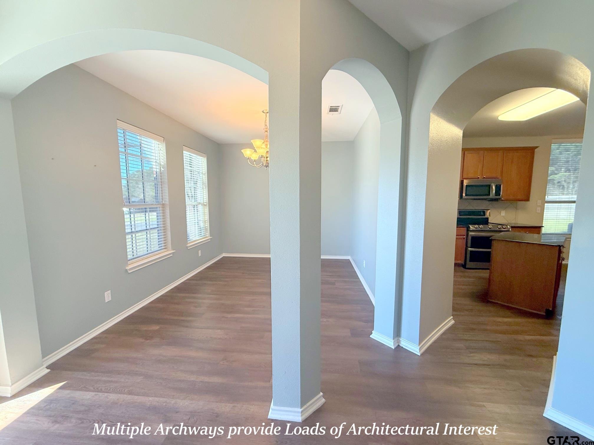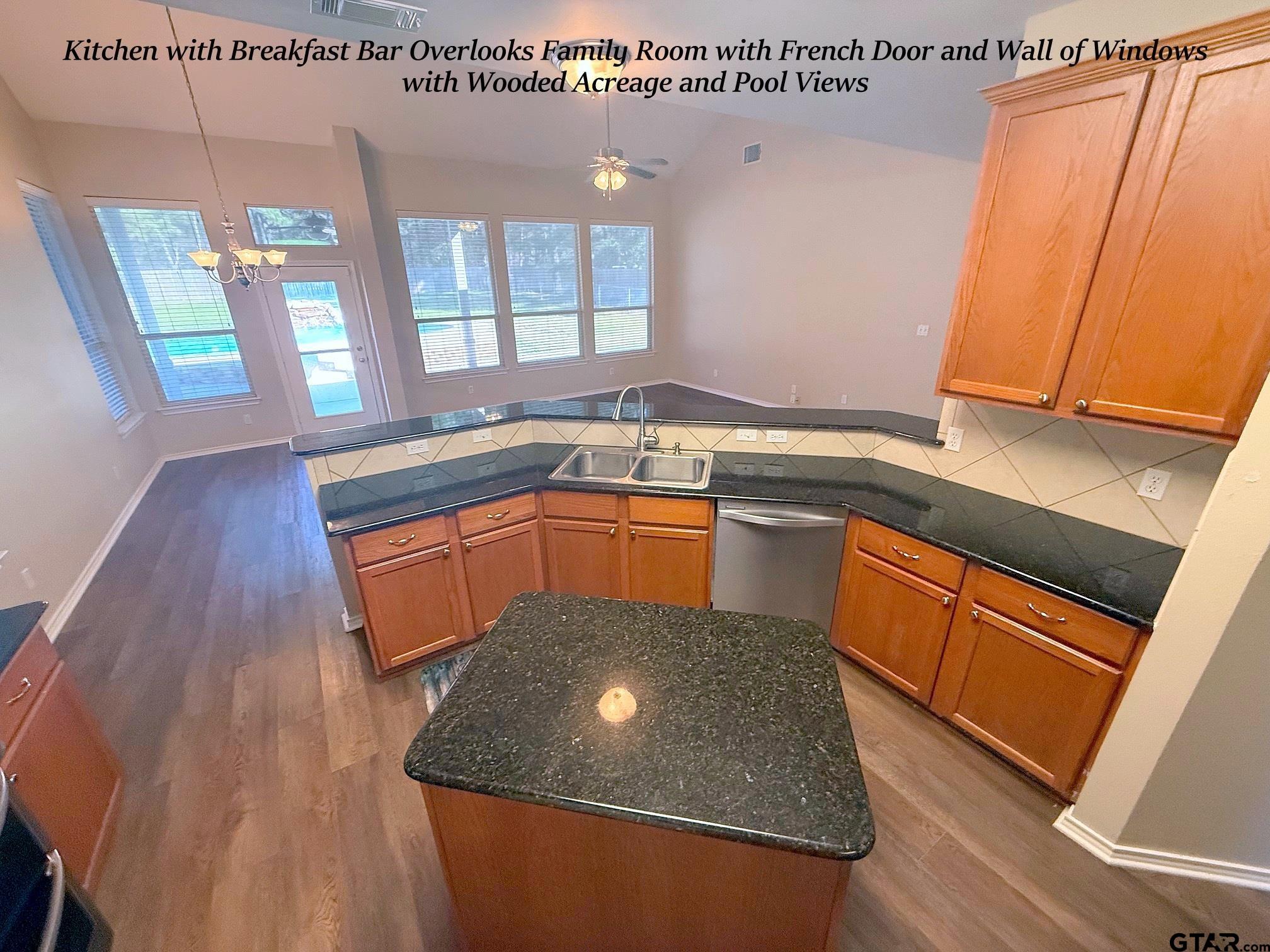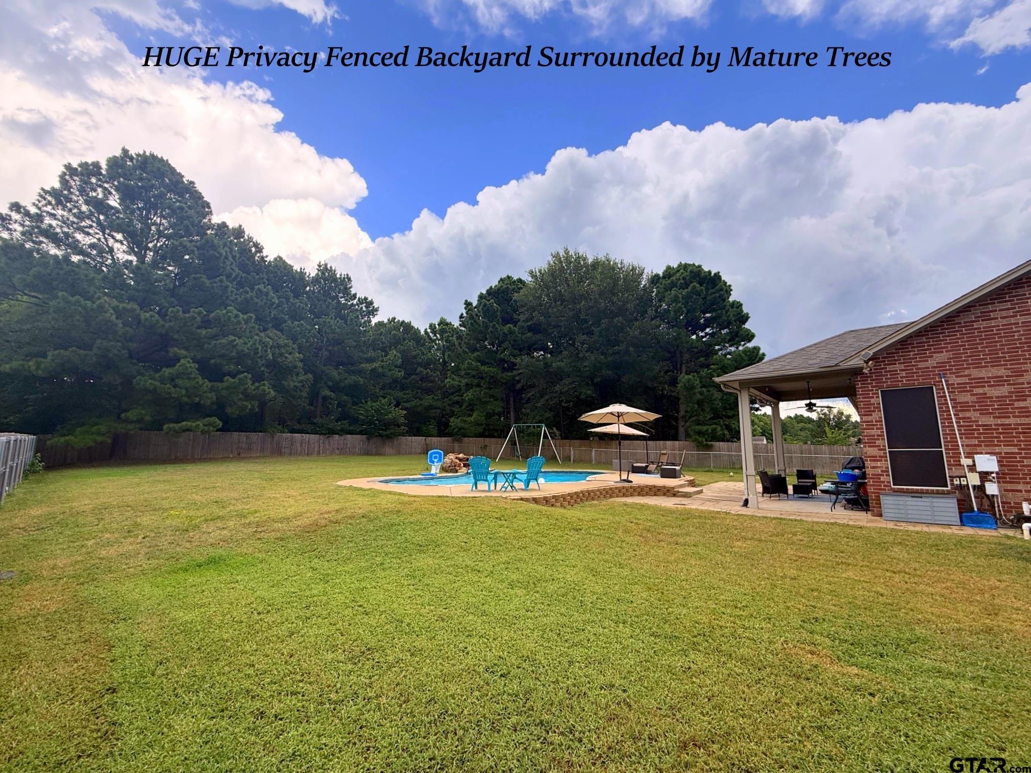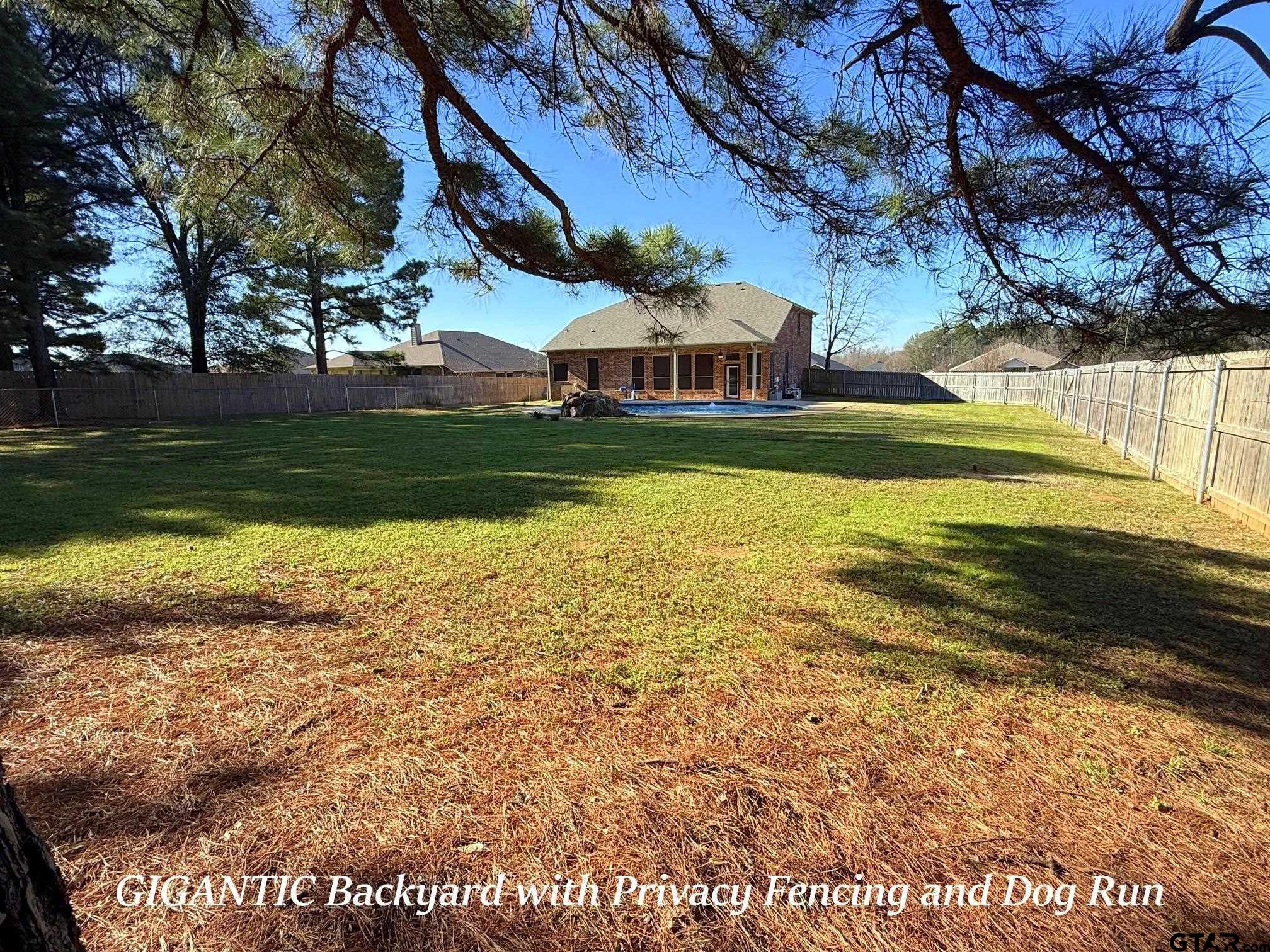 | WOW! This 4-5 Bedroom/2.5 Bath/2 Car Garage home on over 1/2 Acre Fenced Lot Backing up to Trees w/a Sparkling Saltwater Gunite Pool w/Waterfall in the highly sought after Lindale School District TRULY HAS IT ALL!!! This Lovely Family Home w/it's corner of a dead-end street location sets far-back from the road w/a Long Concrete Drive - together affording Plenty of Parking for Large Gatherings. The Covered Columned Front Porch & Lead-Glass Entry Door Welcome Guests inside where they are greeted w/a Double-Arched Entry to the Front Living or Dining Area, an Office (or 5th Bedroom) w/a Walk-In Closet, & adjoining downstairs Guest 1/2 Bath. The Updated Island Kitchen w/Big Breakfast Bar Features Slab-Granite Counters, Upgraded Stainless Steel Appliances, Walk-In Pantry, 42" Uppers, LOADS of Counter & Storage Space & Opens onto the Back Family Room & Dining Area w/Soaring Vaulted Ceilings & a Wall of Floor-to-Ceiling Windows & French Door to Covered Back Patio, Fenced Yard & Pool. The BIG downstairs Master features 10' Ceilings Tall Windows & Large Master En-Suite with Oversized Vanity, Separate Tub, Shower, Water Closet & Oversized Walk-In Closet. The Downstairs Laundry w/room for 2nd Fridge & 2 car Garage completes the ground level. Upstairs is a GIGANTIC Family Room (Large enough to divide into two rooms if desired) w/Walk-In & 2nd Closet. Continuing on to the Upstairs Guest Rooms an Arched Cut-Out overlooks the FamRm & connects the two floors. Completing the upstairs are 3 Large Guest Bedrooms & Nice Guest Bath - All in Immaculate Condition. The home has storage GALORE w/6 Walk-Ins in addition to multiple other Closets. Upgraded Carpet, LVT Wood Plank Floors & Fresh Paint Throughout. Out Back off the Covered Patio is extended Patio & Pool Decking, the Sparkling Salt-Water Gunite Pool w/Waterfall & GIGANTIC, Fully Privacy Fenced Backyard w/Separate Dog Run, all backing up to nothing but Mature Trees. New Roof 2022. Nothing on the Market Compares to this ONE - HURRY!!! | |